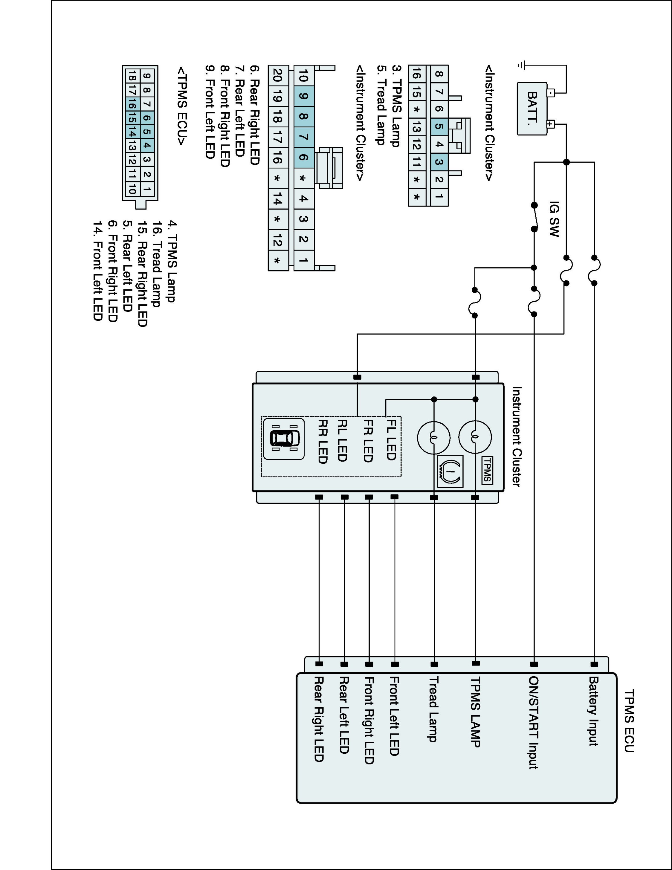The TPMS system is the shorten word of Tire Pressure Monitoring System. This system monitors the pressure of the tire and when it drops below a certain pressure, the TPMS ECU makes the warning lamp turn on for notifying the driver. This system consists of TPMS ECU (or TPMS Receiver), Initiators and TPMS sensors. If the air pressure of a tire drops below a certain value, the TPMS ECU makes the tread lamp turn on for letting a driver know. In a case of TPMS High specifications, it gets a driver to know which tire has a low pressure via a LED.