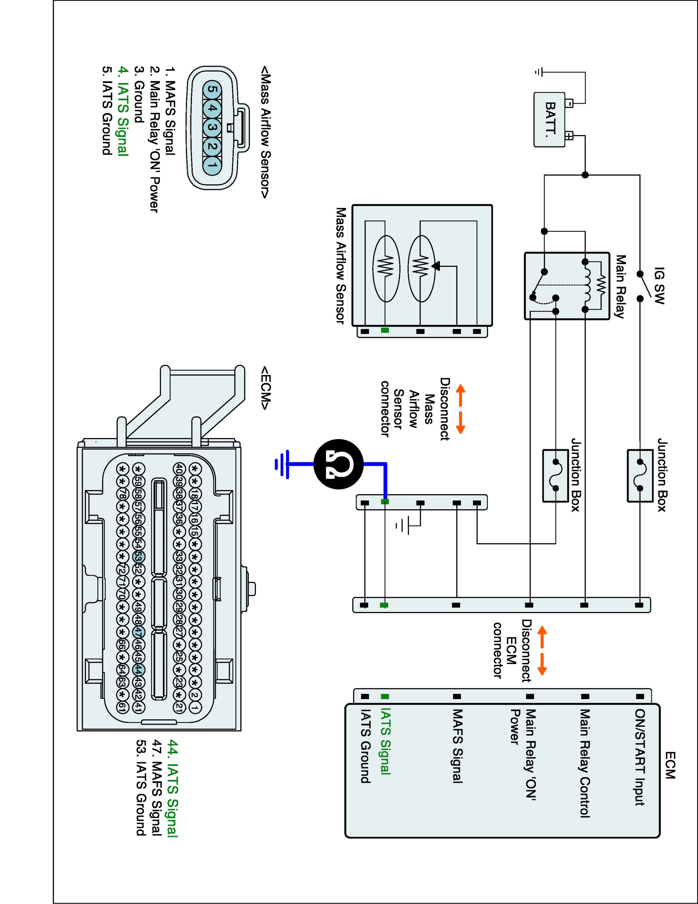 1. IG "OFF" and disconnect IATS connector and ECM connector.