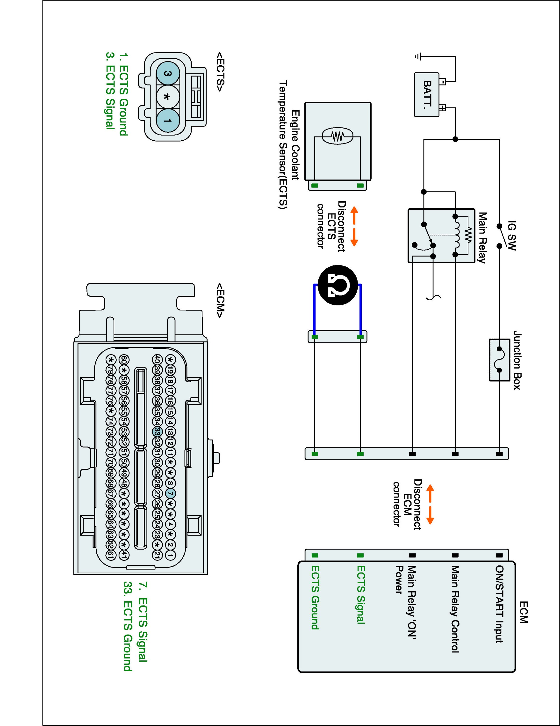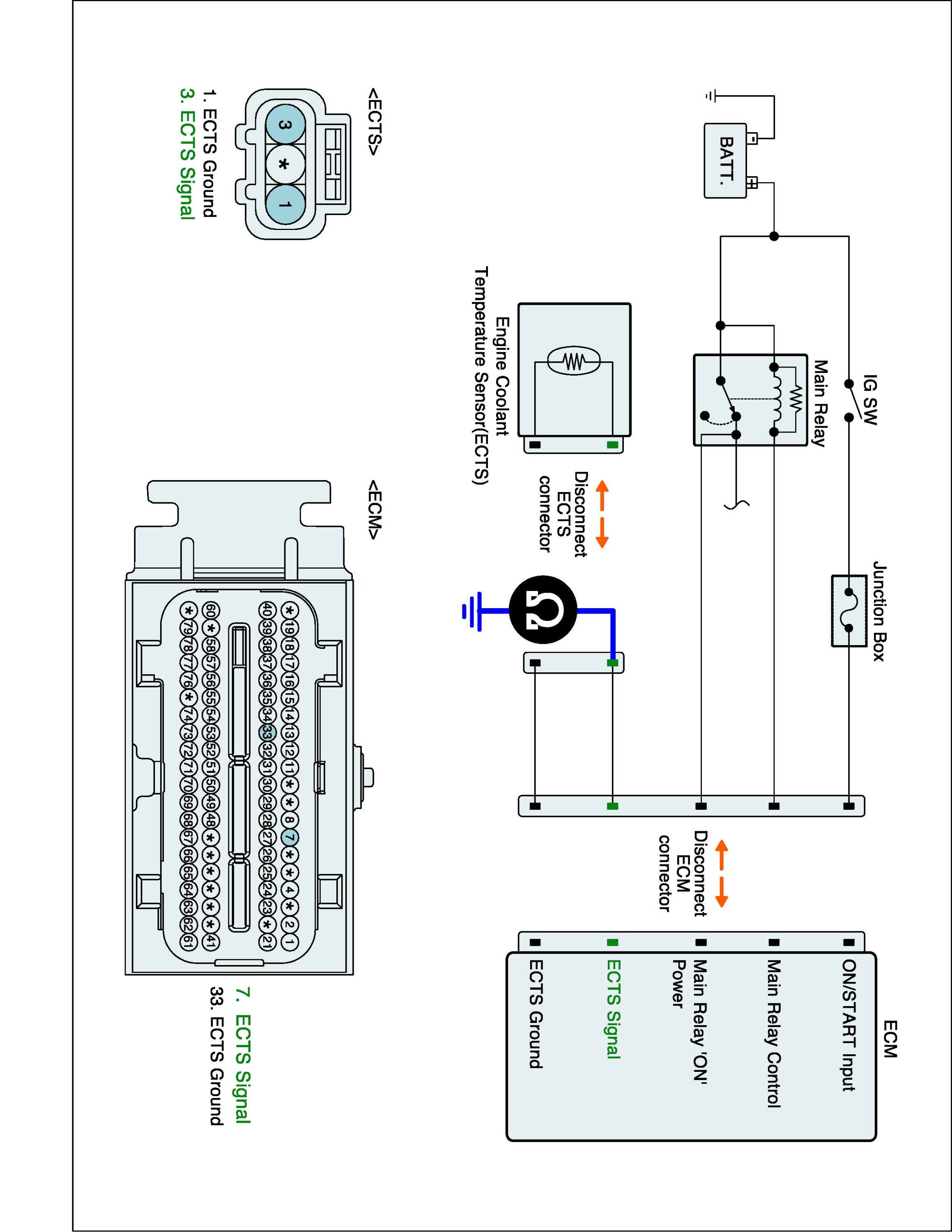 1. IG "OFF" and disconnect ECTS connector and ECM connector.