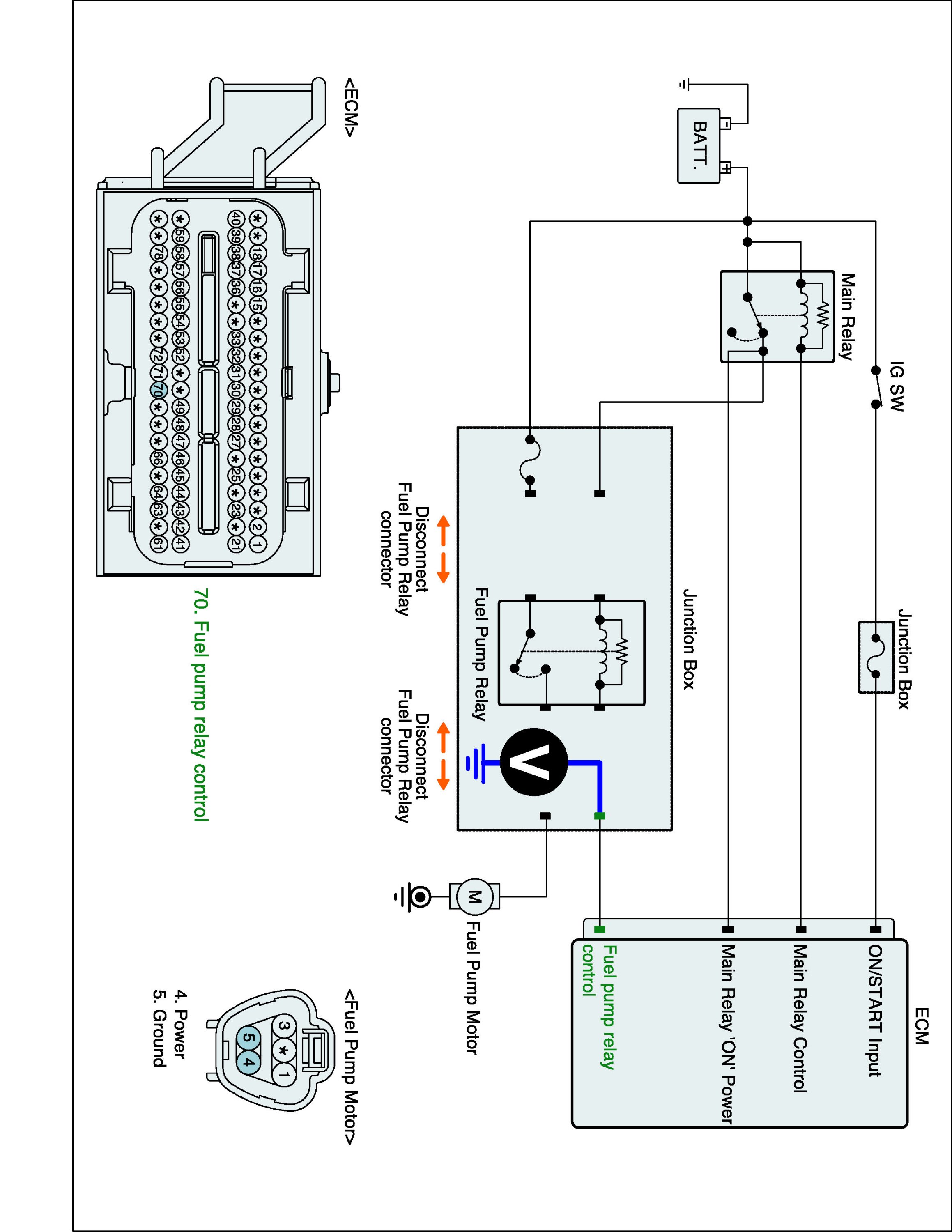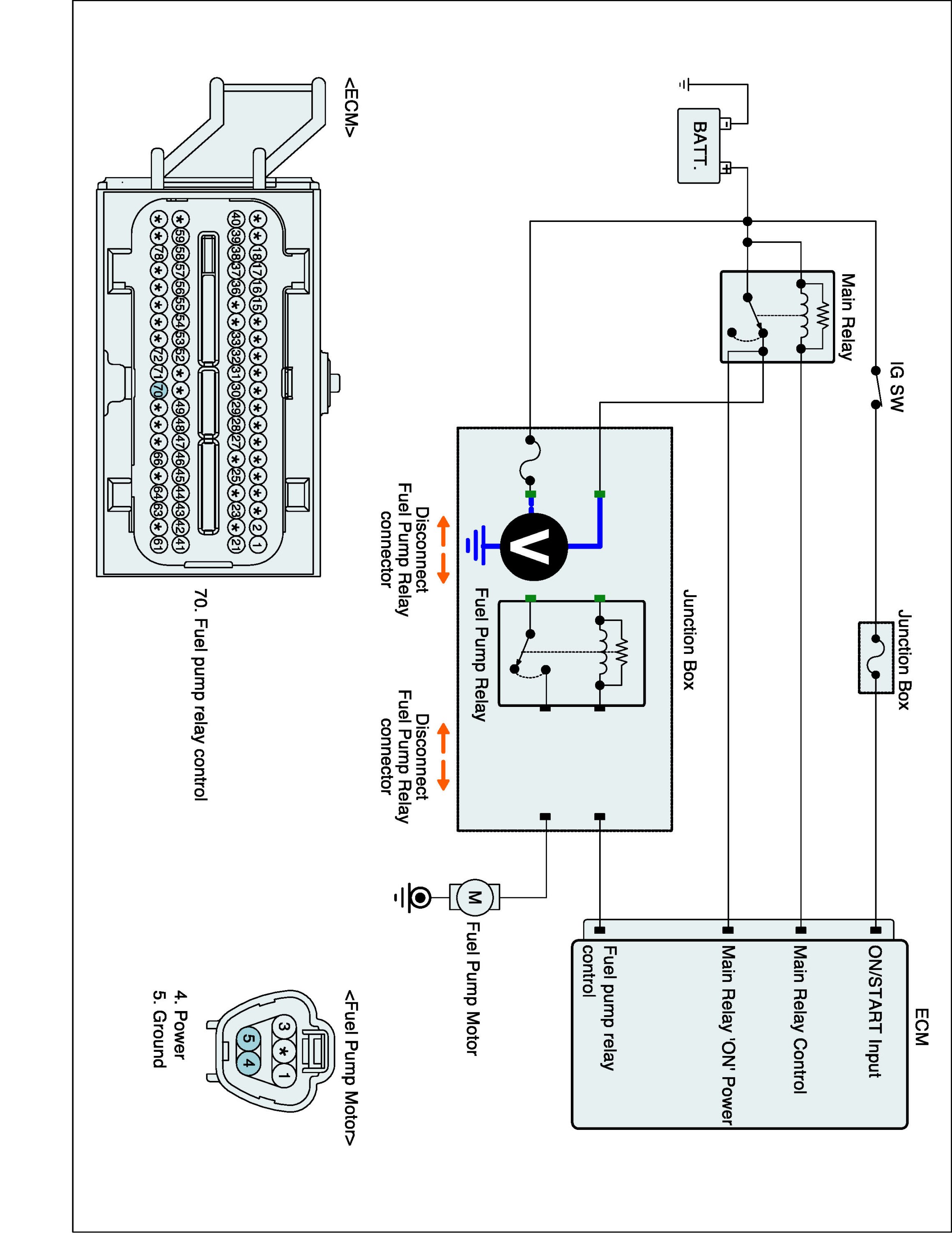 1. IG "OFF" and disconnect fuel pump relay connector.