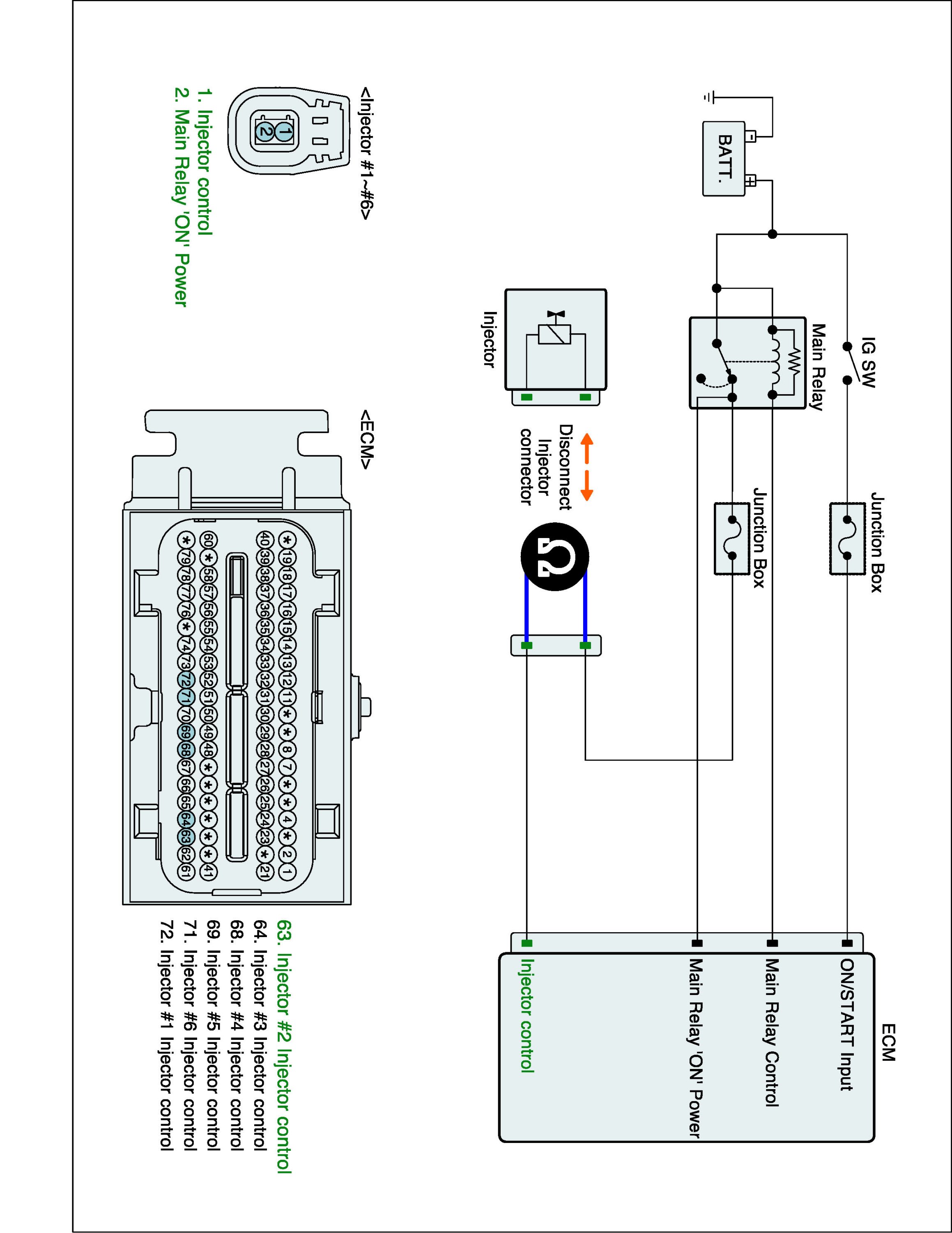 1. IG "OFF" and disconnect injector connector and ECM connector.