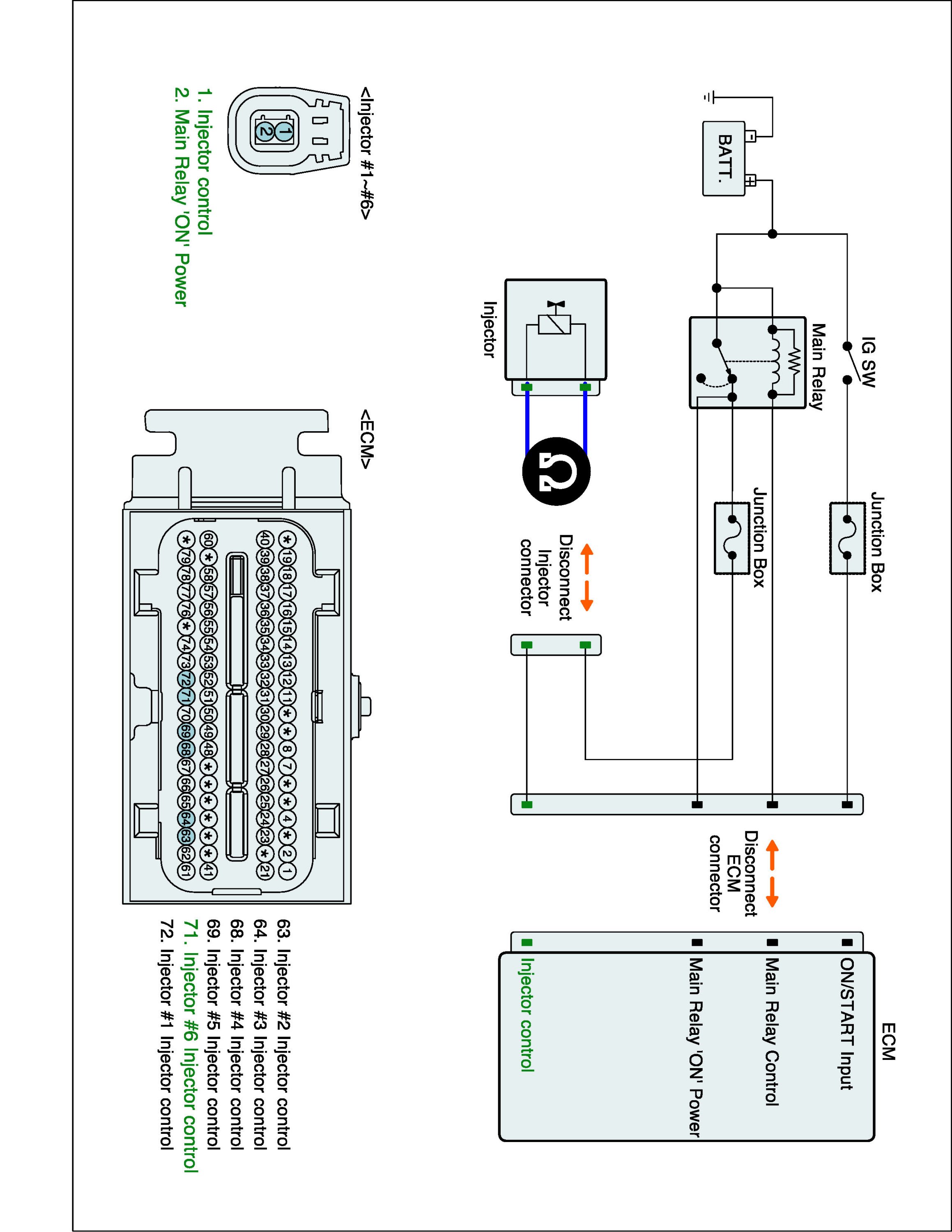 2. Measure resistance between power and control terminals of injector connector. (Component side)