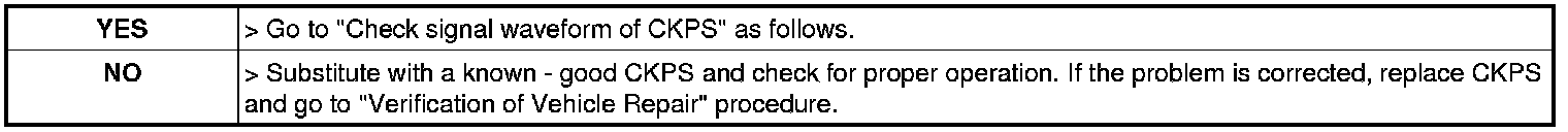 2. ENG "ON" and Measure signal waveform at signal terminal of CKPS.