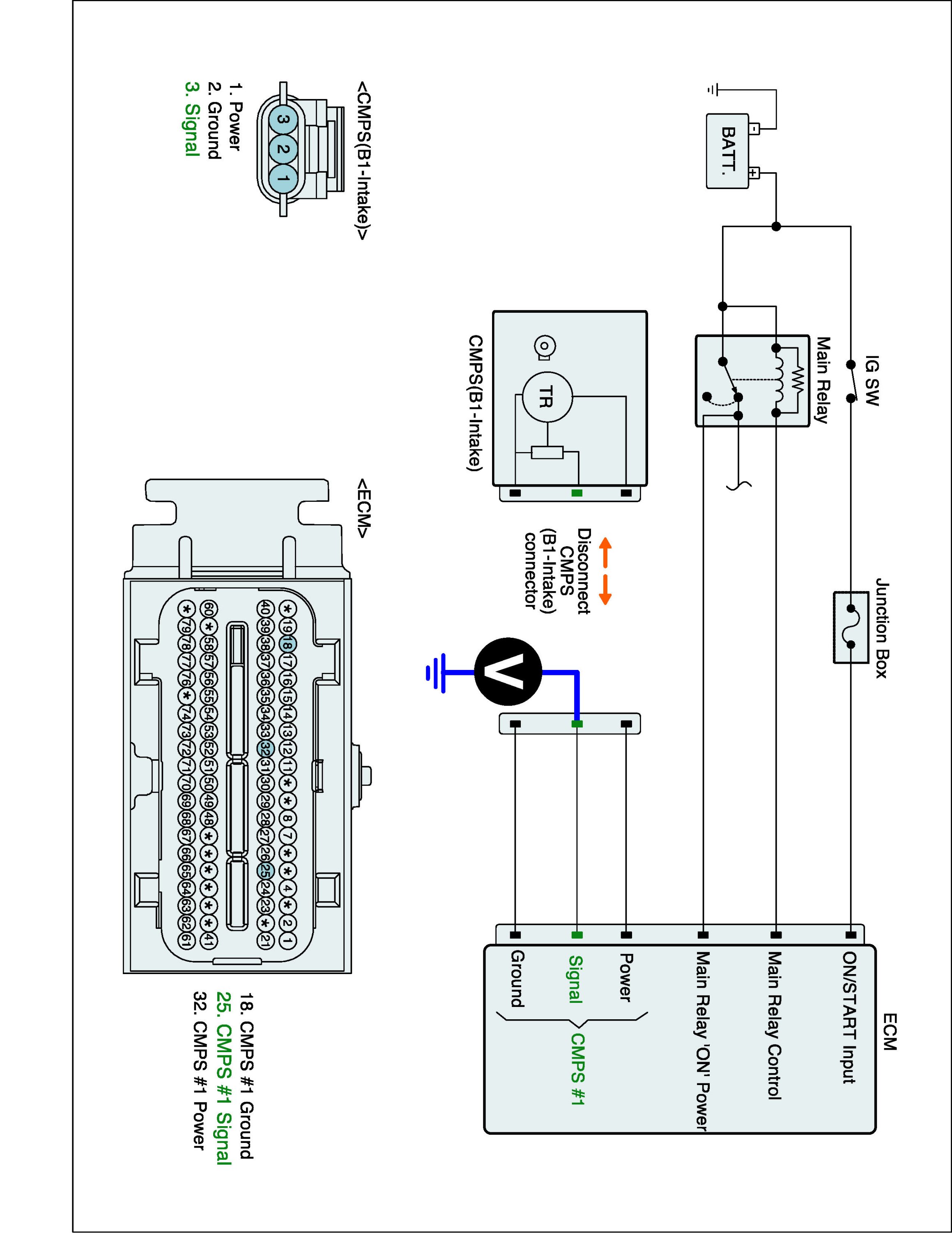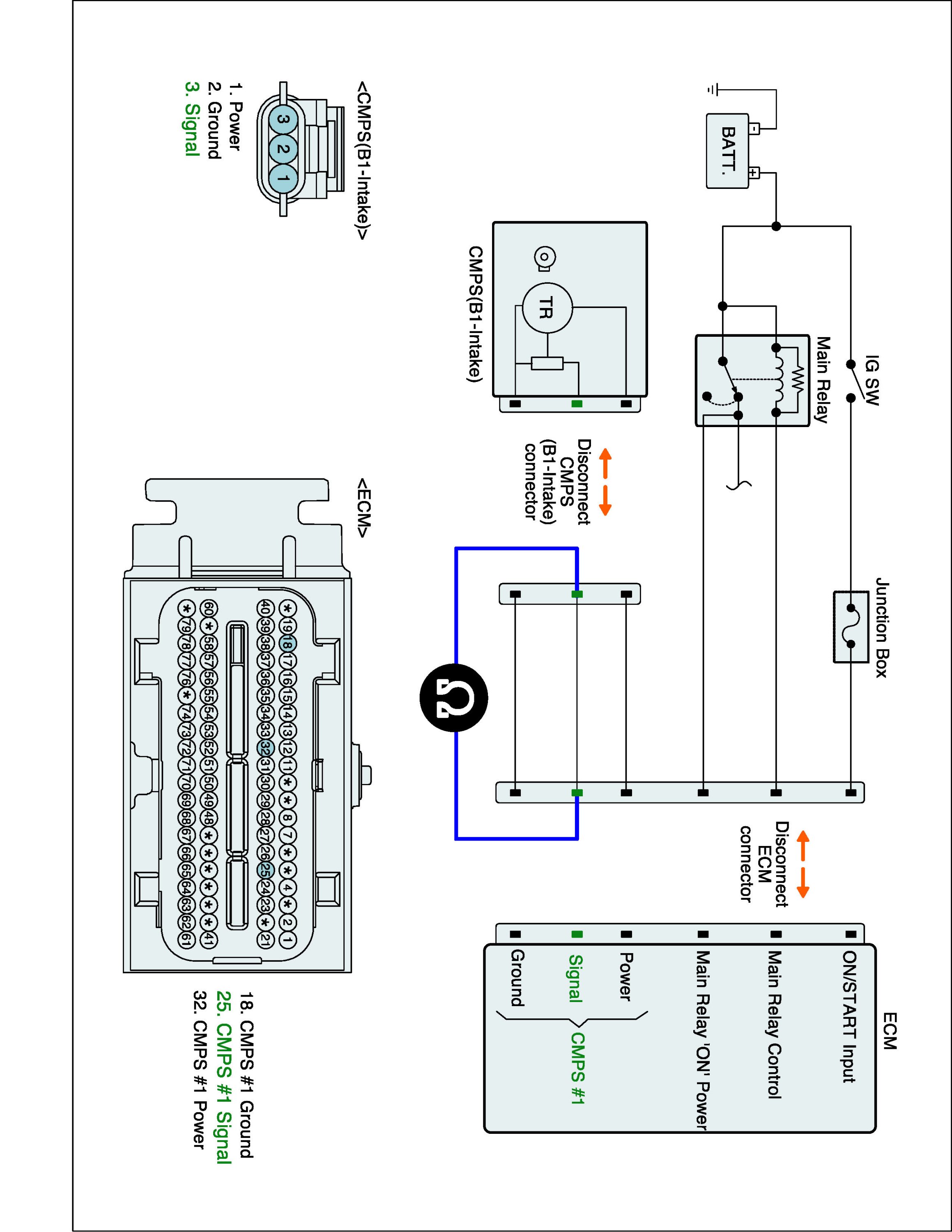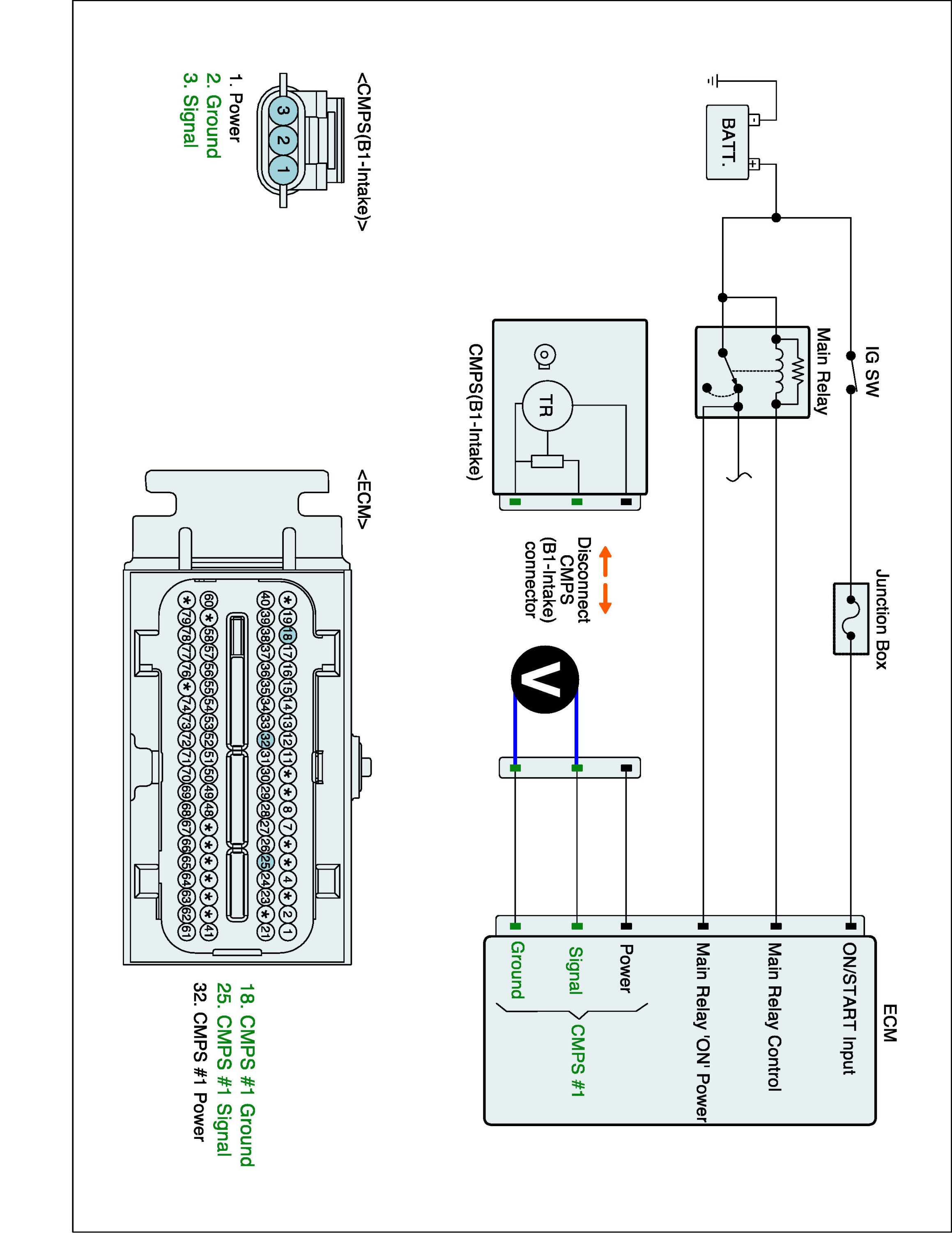 1. IG "OFF" and disconnect CMPS (B1-Intake) connector and then IG "ON".