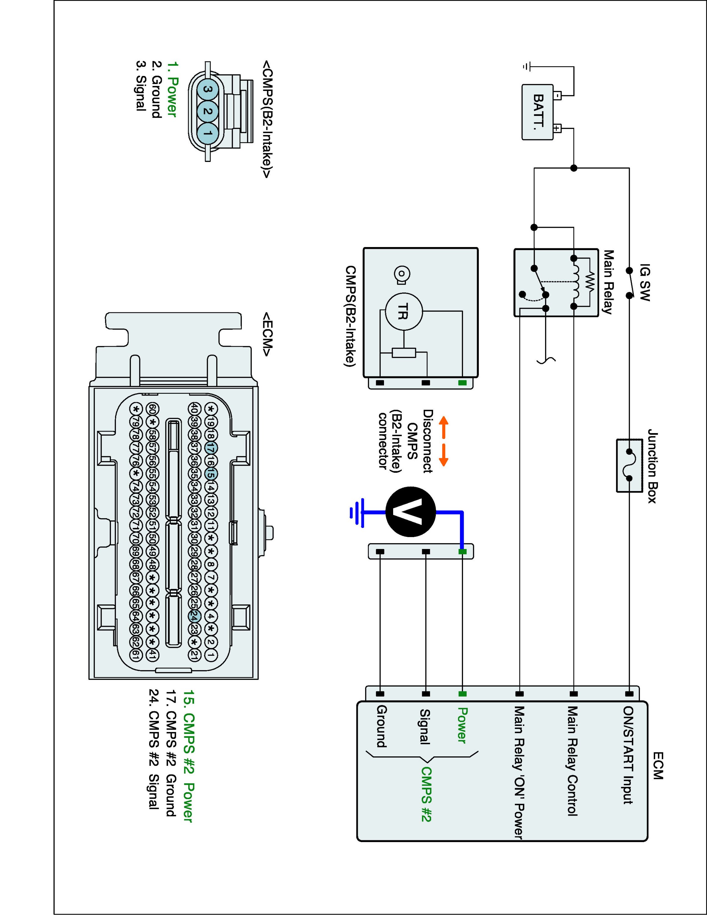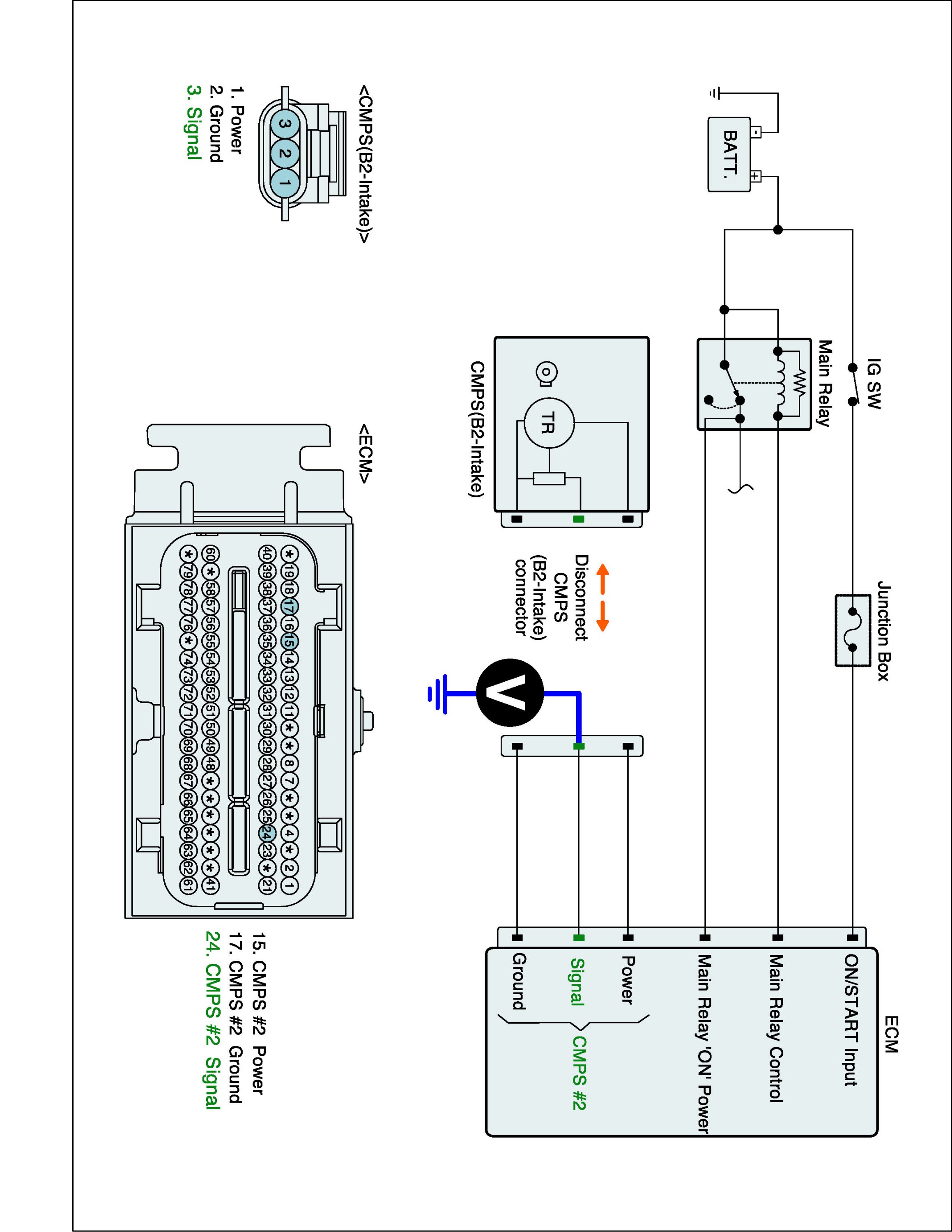 1. IG "OFF" and disconnect CMPS (B2-Intake) connector and then IG "ON".