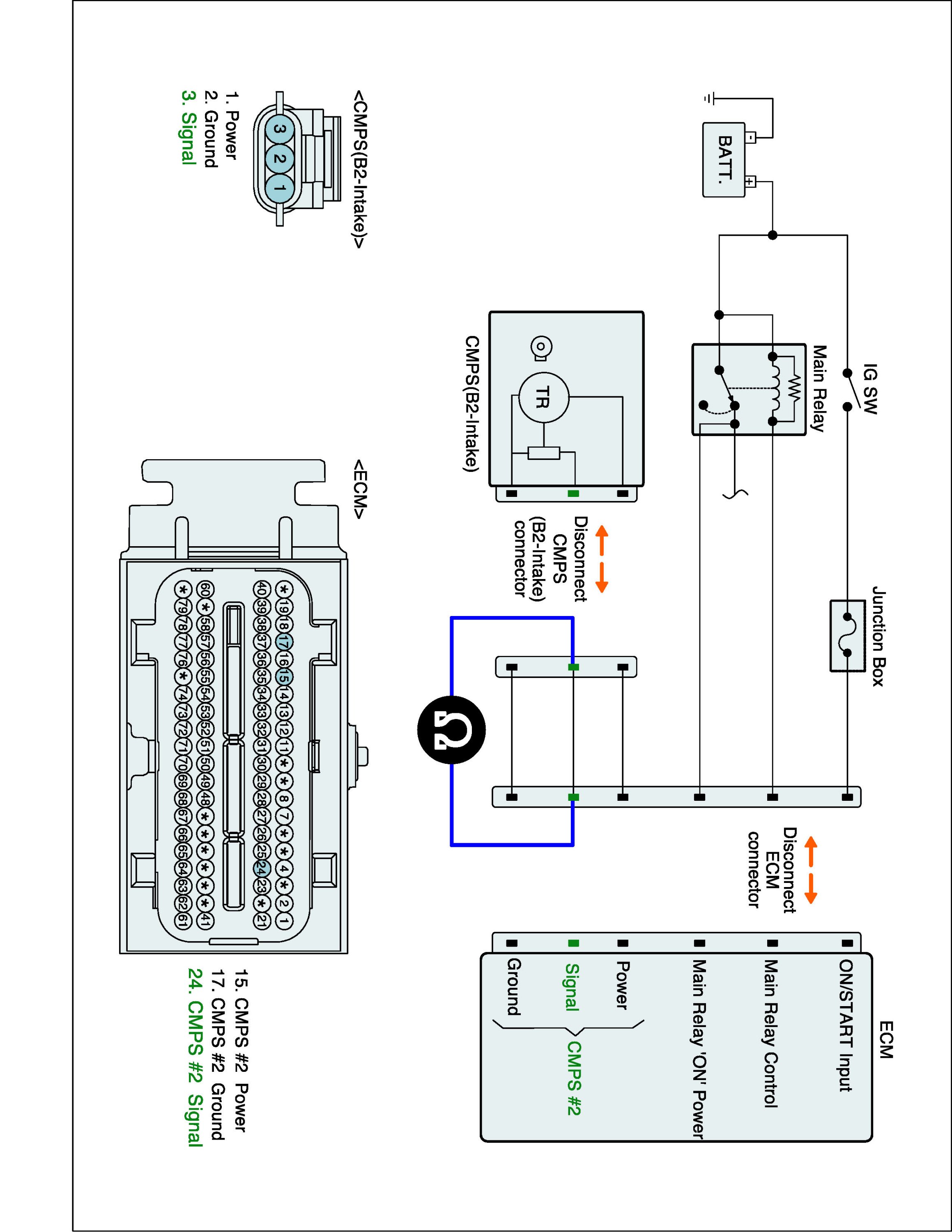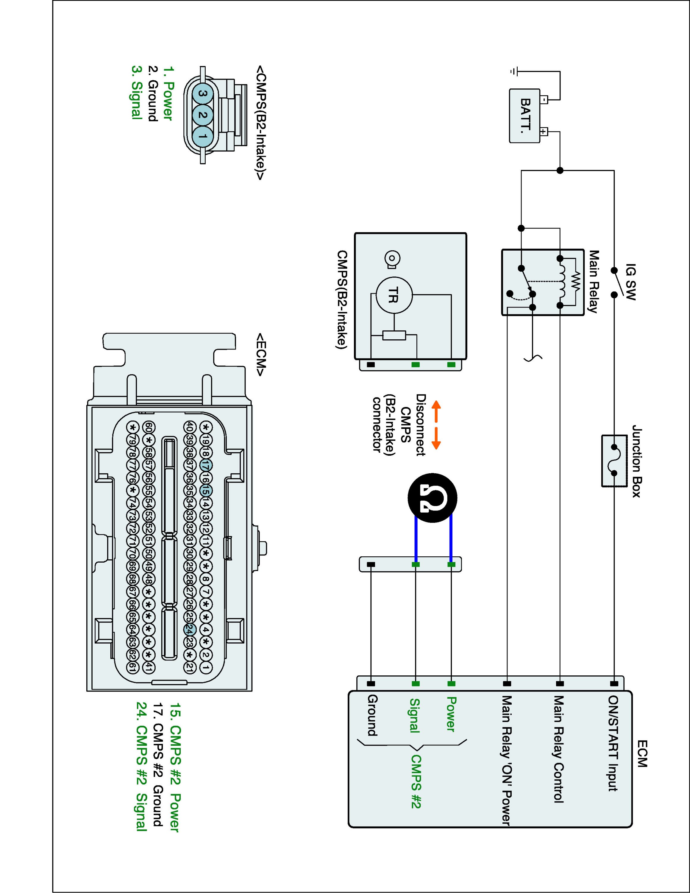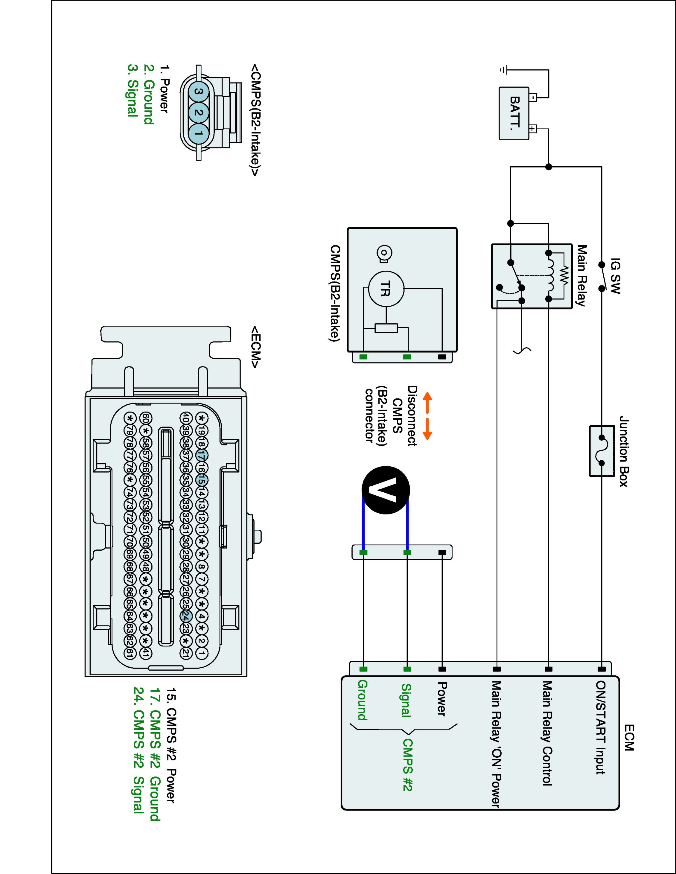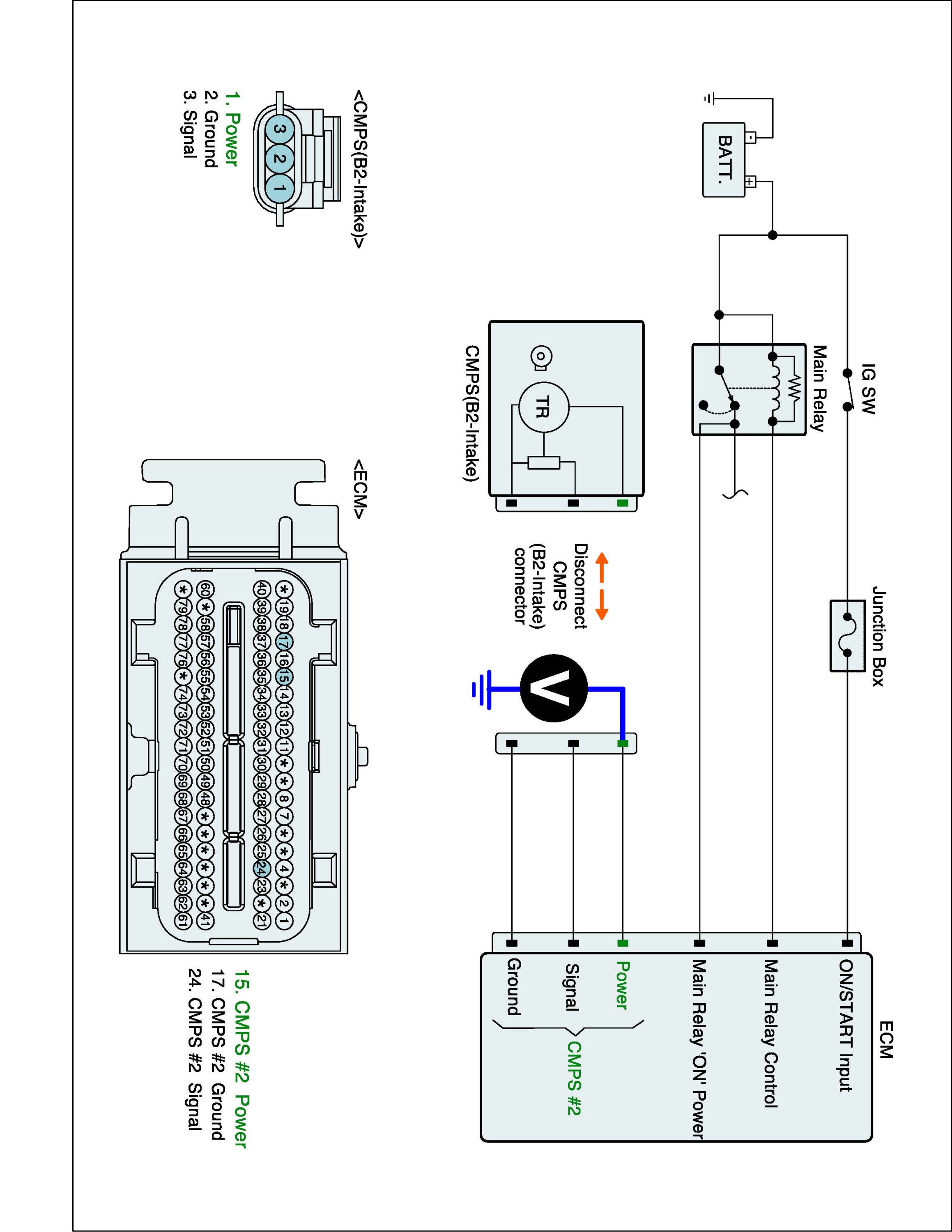 1. IG "OFF" and disconnect CMPS (B2-Exhaust) connector and then IG "ON".