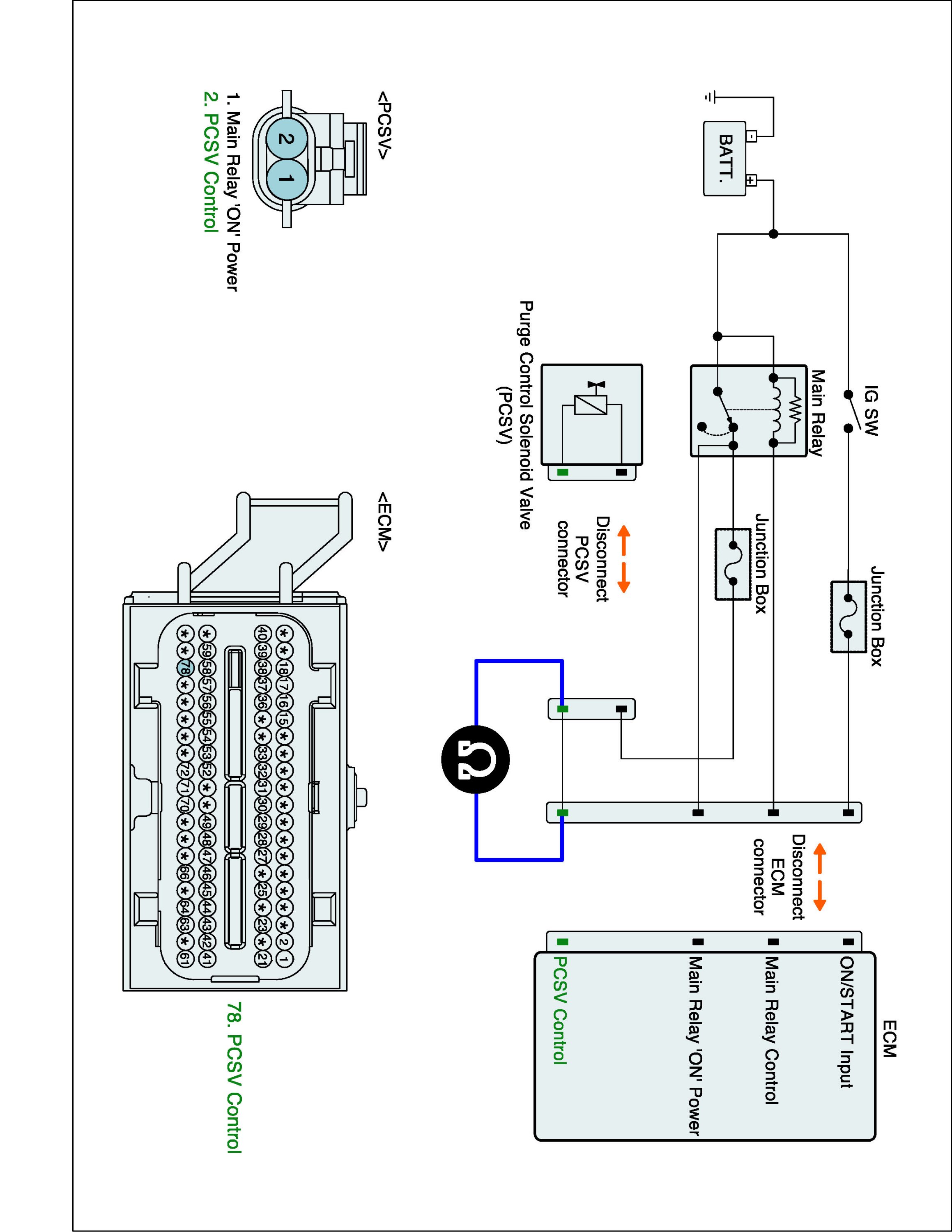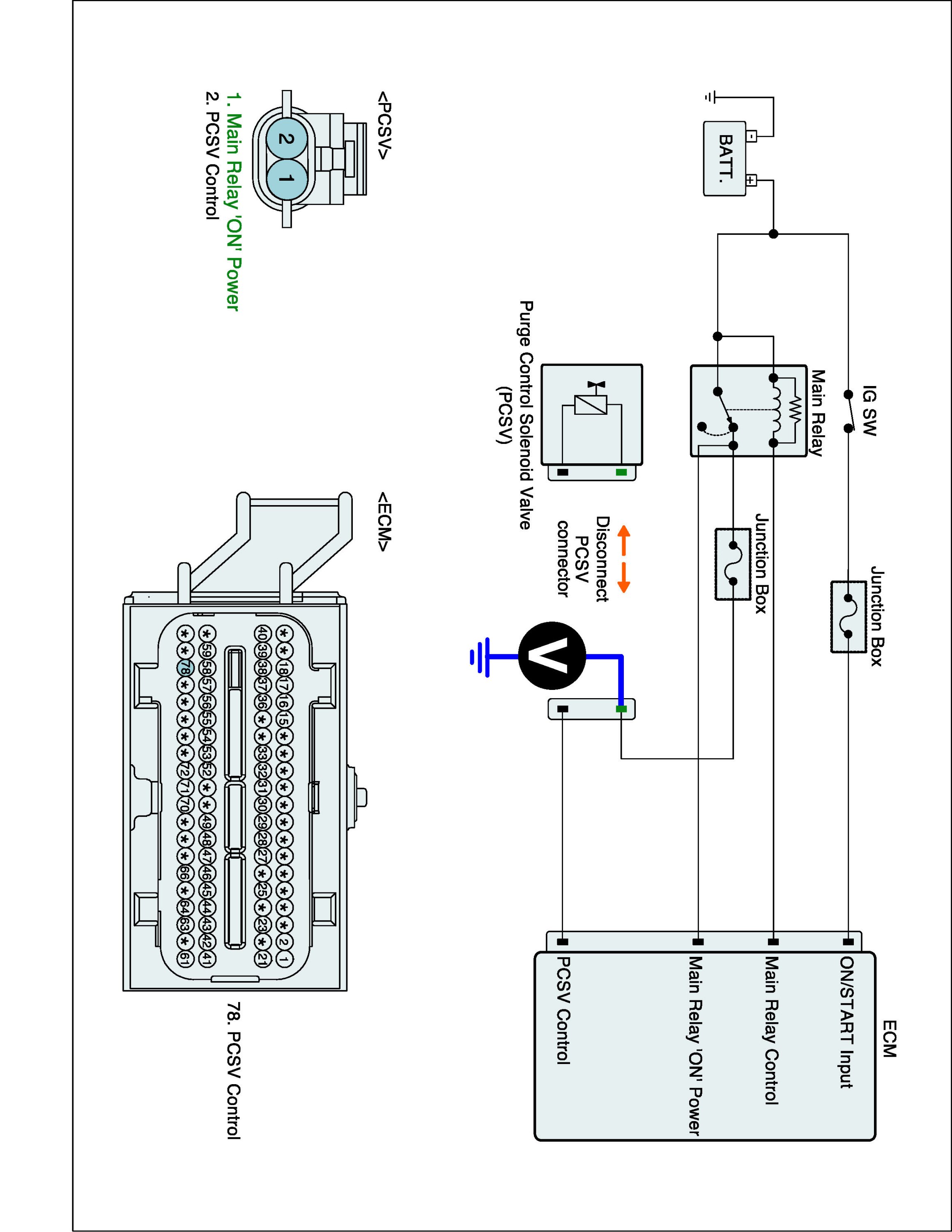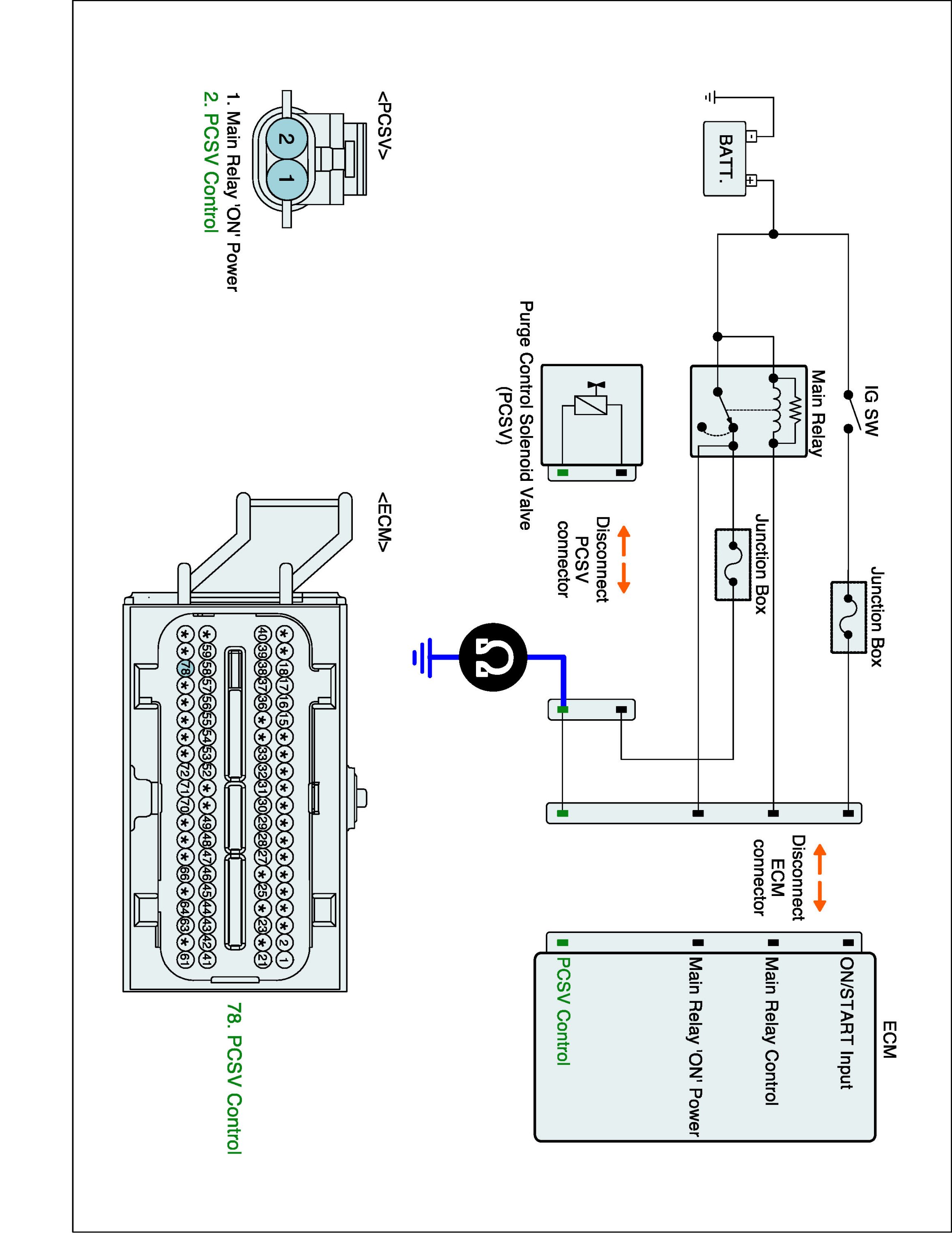 1. IG "OFF" and disconnect PCSV connector and ECM connector.