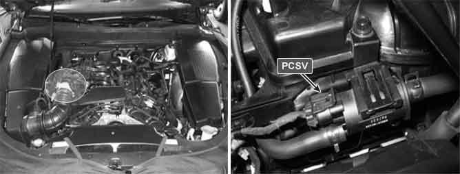 The Purge Control Solenoid Valve (PCSV) is open or closed by ECM and vacuum of intake manifold.
