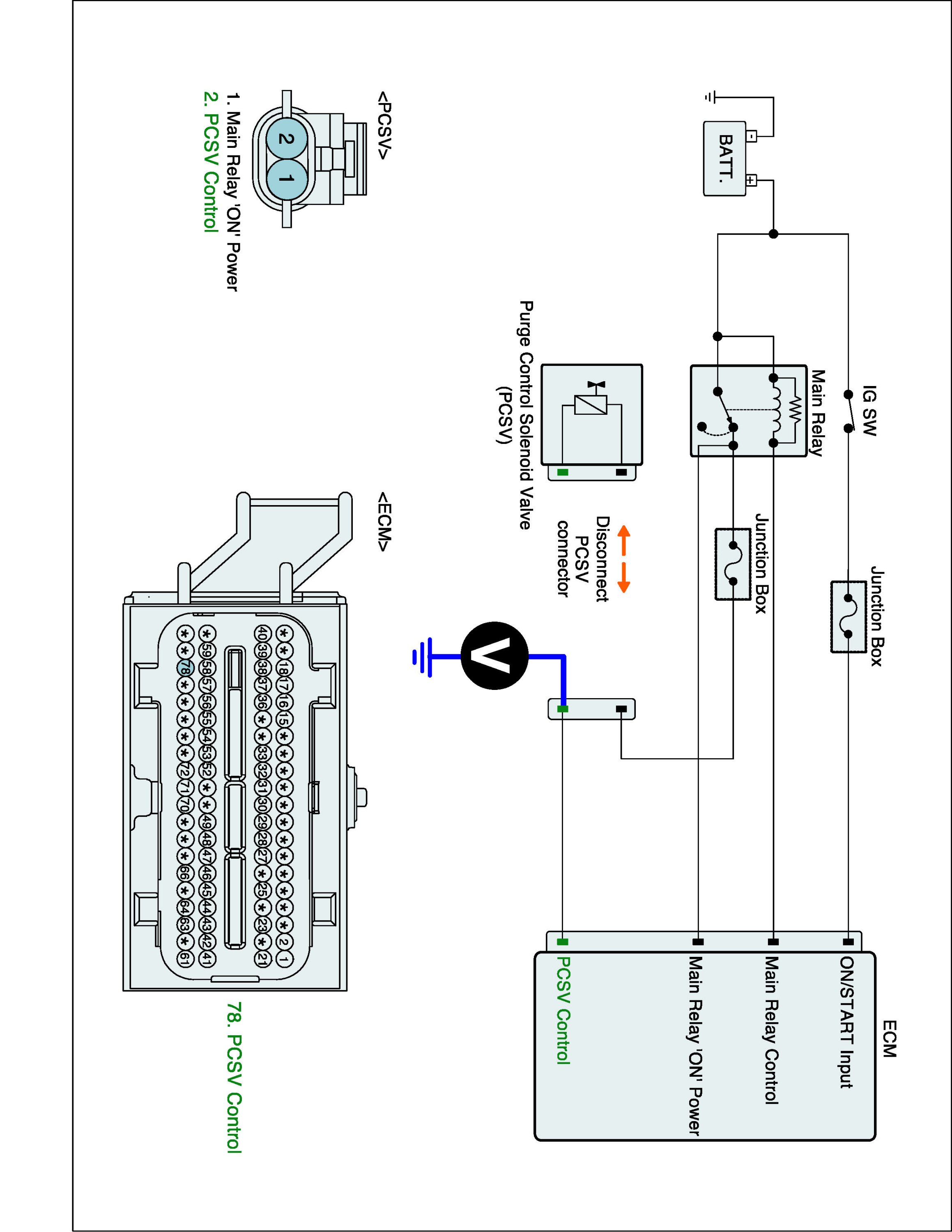 3. Measure voltage between control terminal of PCSV harness connector and chassis ground.