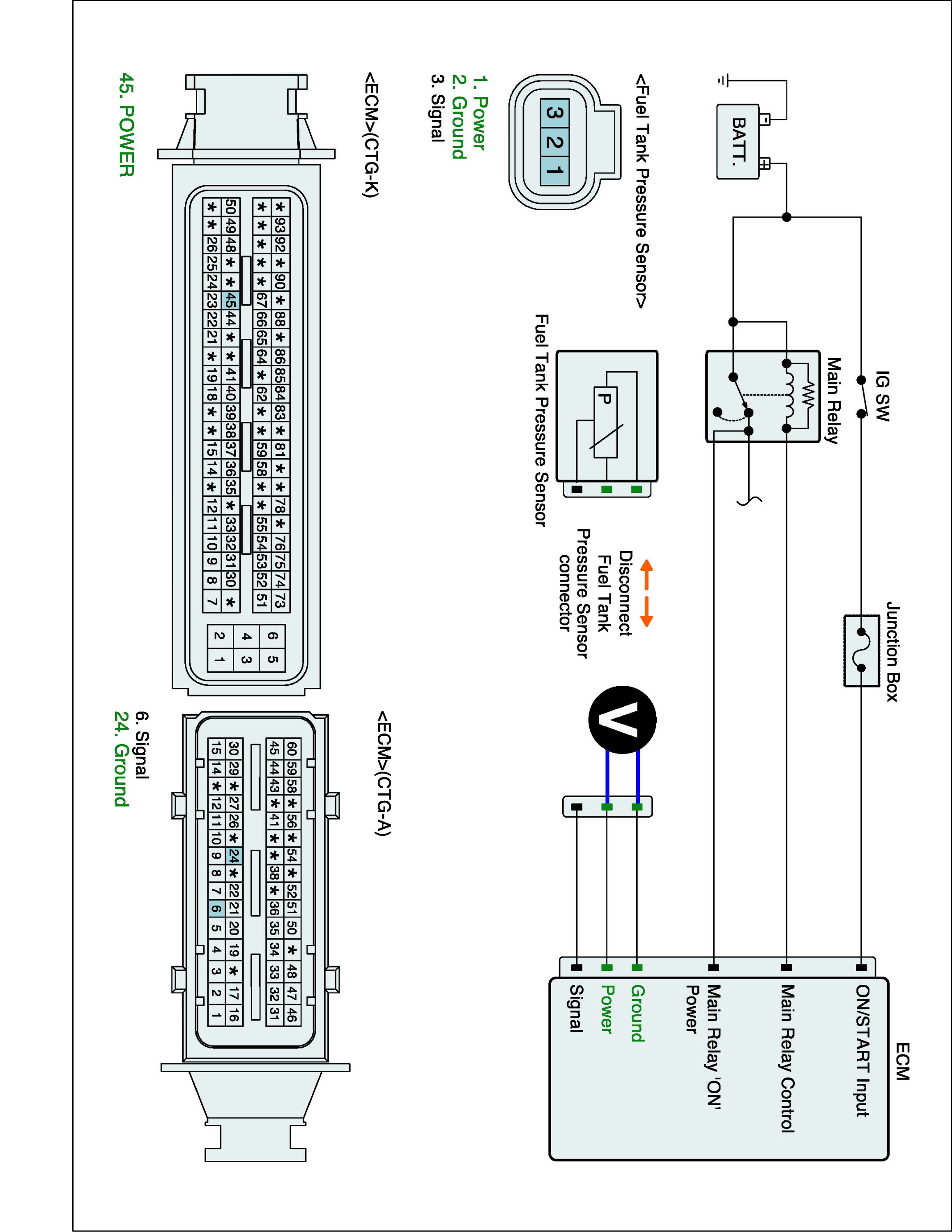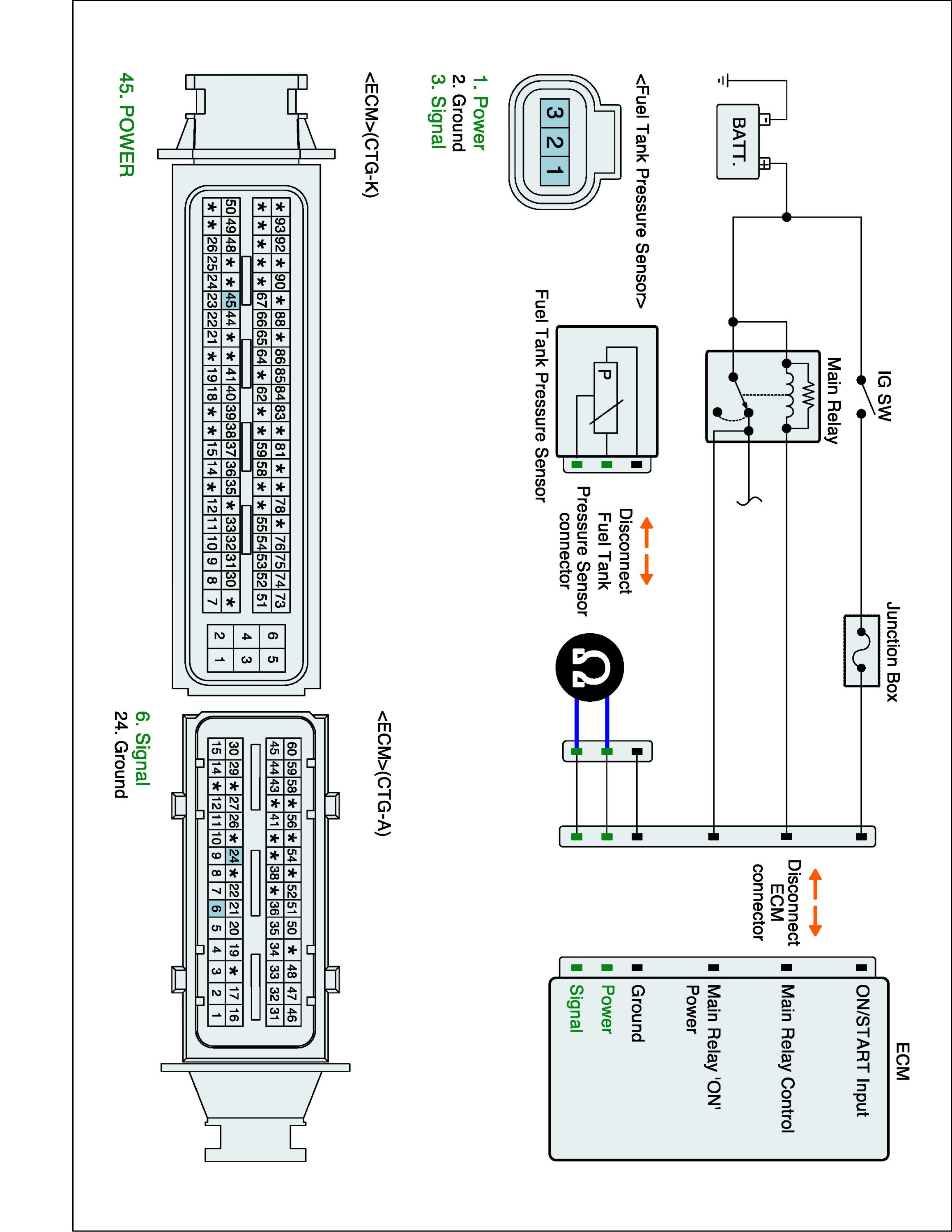 1. IG "OFF" and disconnect FTPS connector and ECM connector.