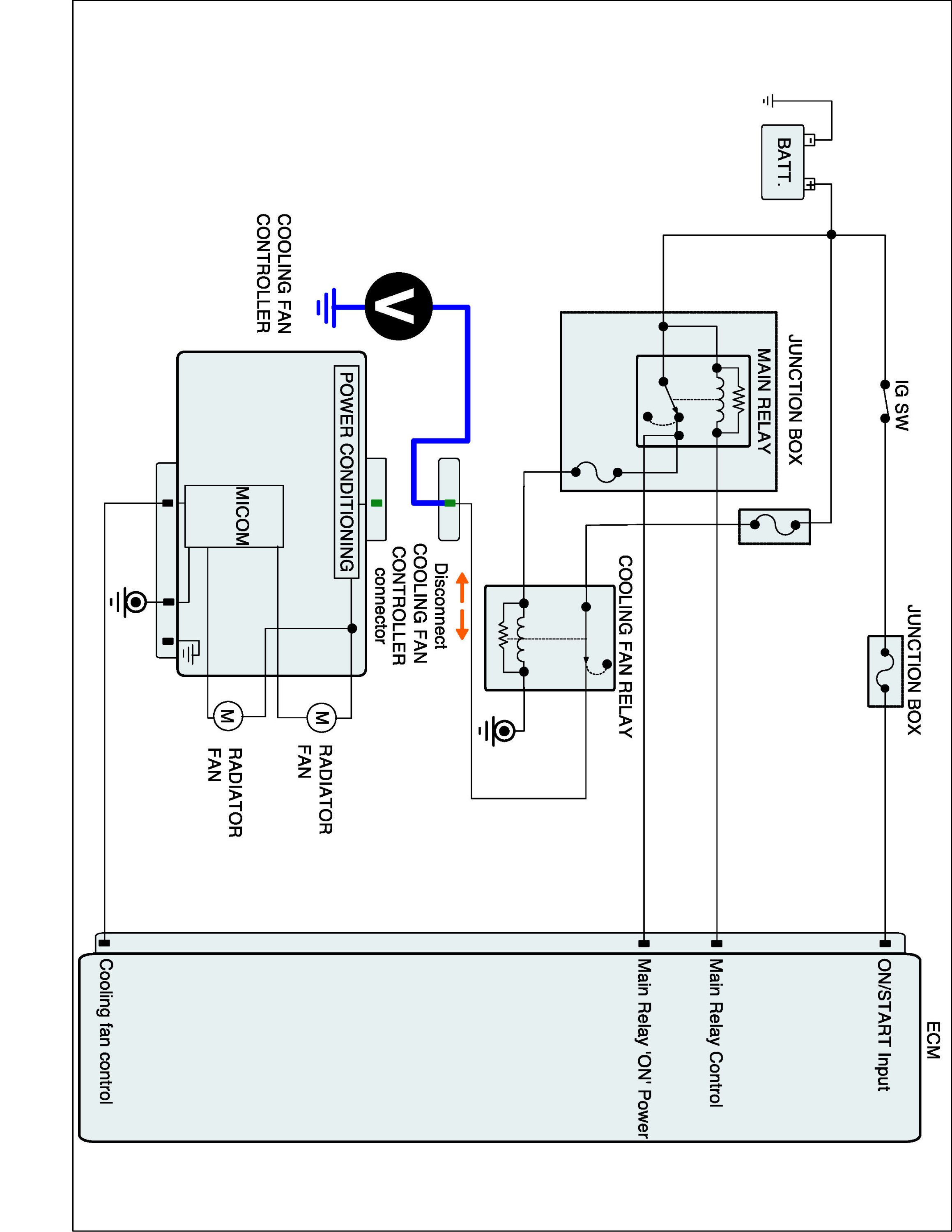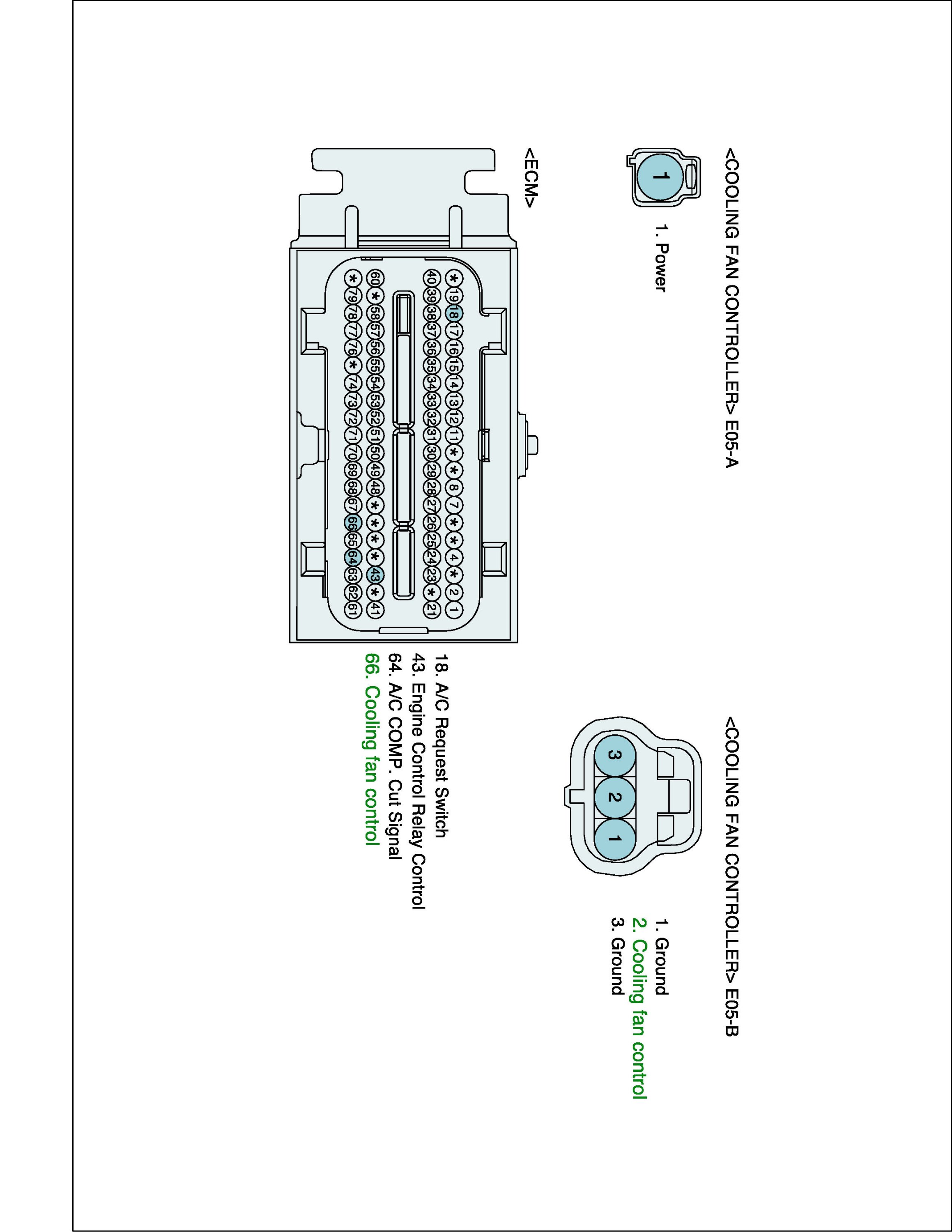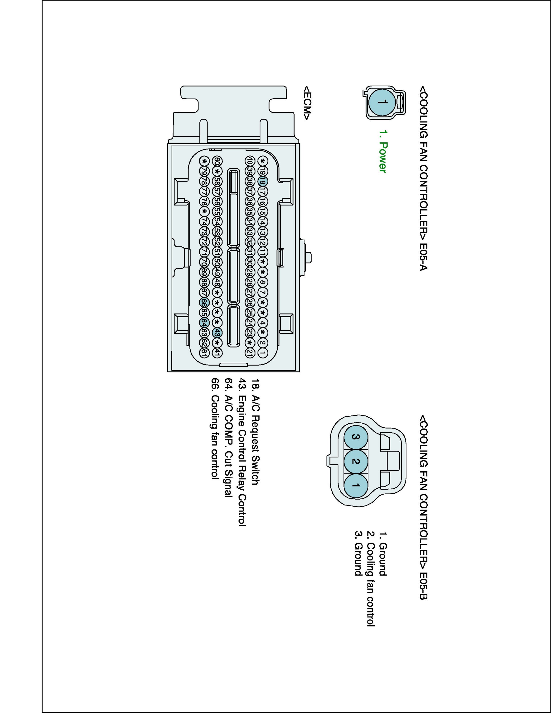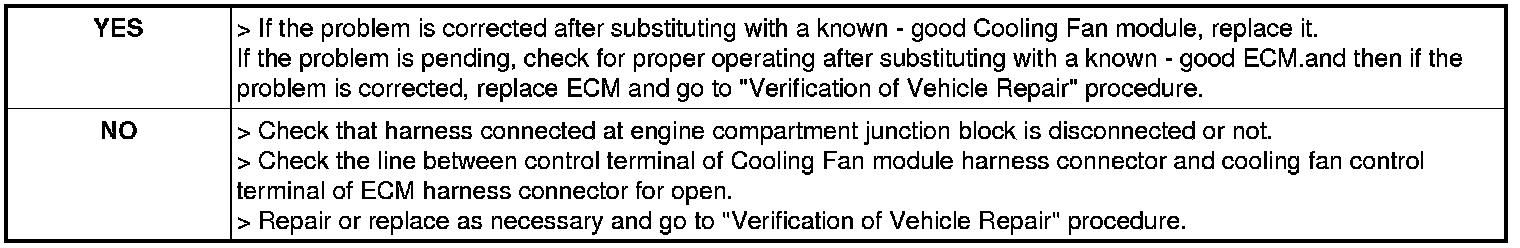 1. IG "OFF" and disconnect Cooling fan module connector.