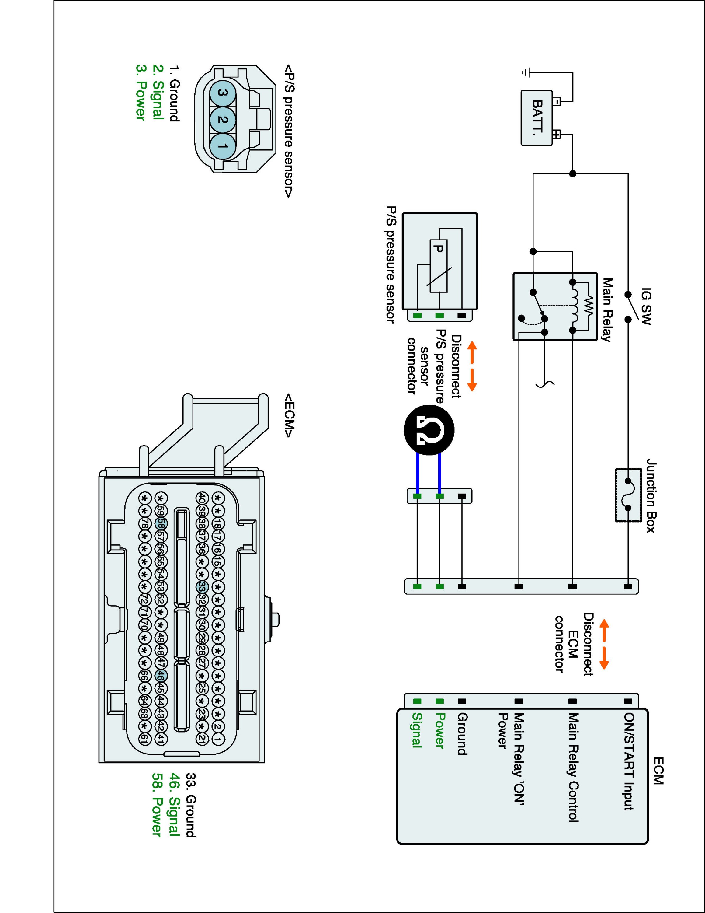 1. IG "OFF" and disconnect the P/S pressure sensor connector and ECM connector.