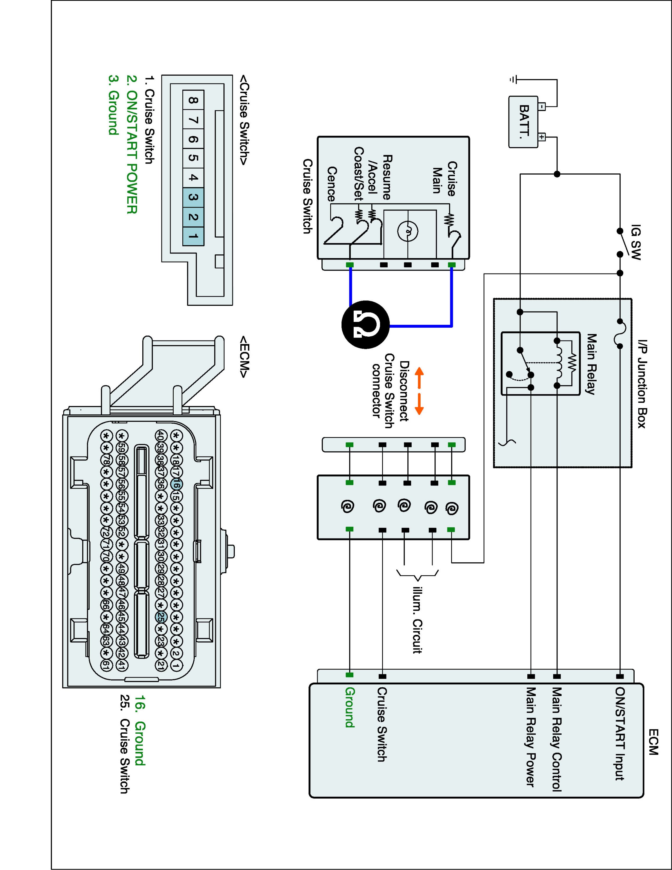 1. IG "OFF" and disconnect Cruise switch connector.