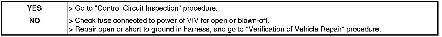 3. Measure voltage between power terminal of VIV harness connector and chassis ground.