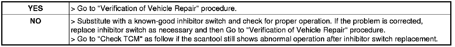 7. Does the scantool show the inhibitor switch position correctly ?