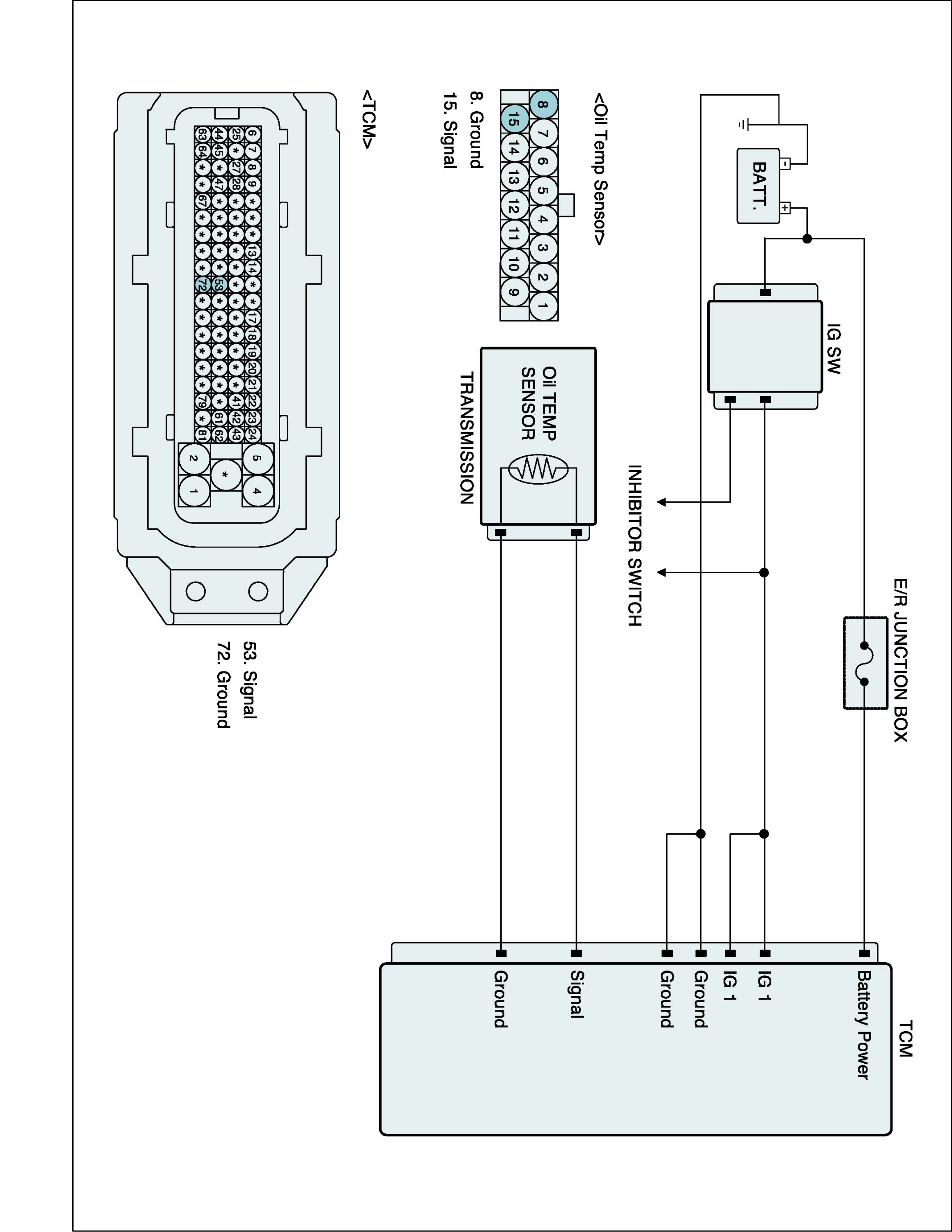 The automatic TRANSAXLE fluid (ATF) temperature sensor is installed in the Valve Body. This sensor uses a thermistor whose resistance changes according to the temperature changes. The TCM supplies a 5V reference voltage to the sensor, and the output voltage of the sensor changes when the ATF temperature varies. The automatic TRANSAXLE fluid (ATF) temperature provides very important data for the TCM's control of the Torque Converter Clutch, and is also used for many other purposes.