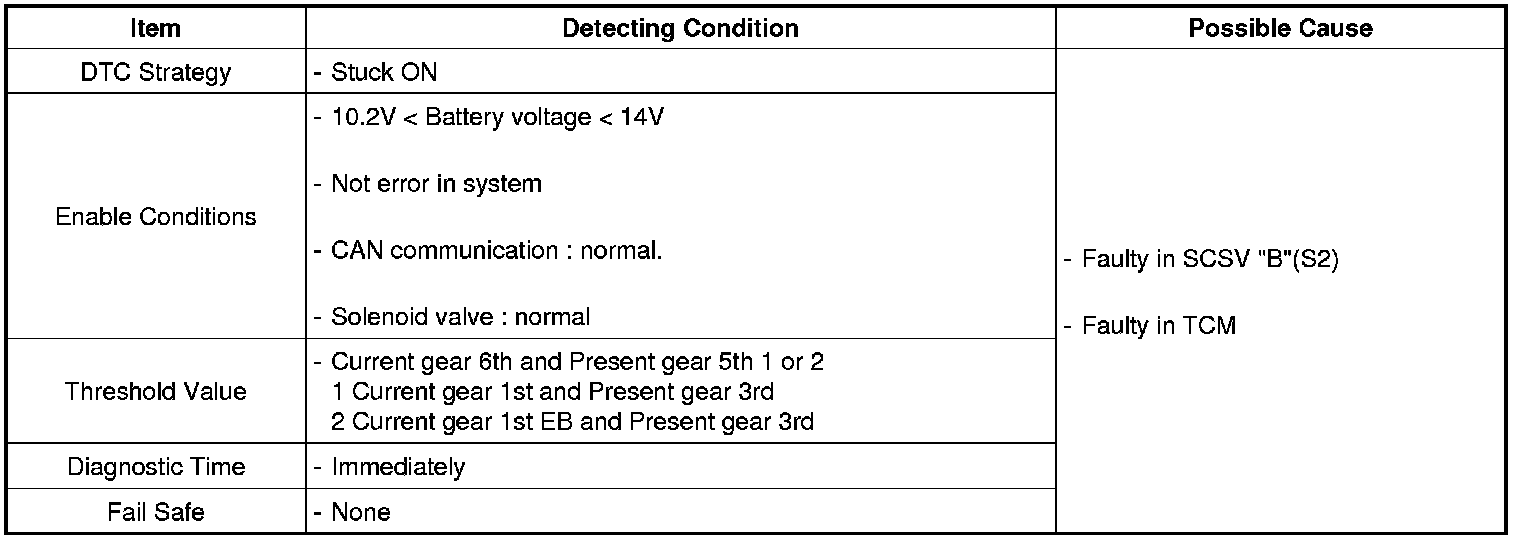 TCM set this code If the rear gear ratio that calculated by Engine speed/Output speed and the target gear ratio that calculated by compounding of solenoid valves are not match.