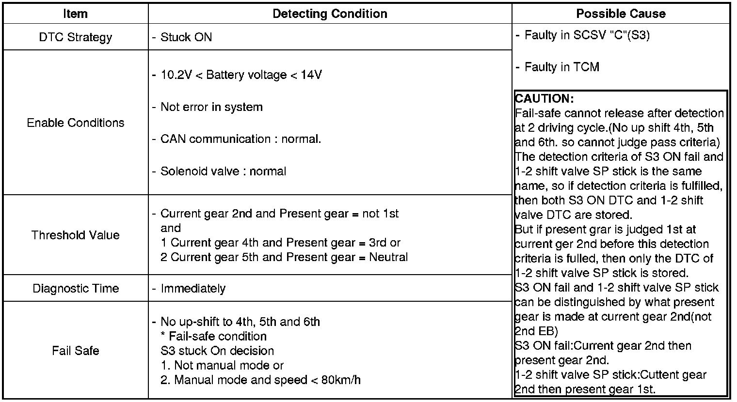 TCM set this code If the rear gear ratio that calculated by Engine speed/Output speed and the target gear ratio that calculated by compounding of solenoid valves are not match.