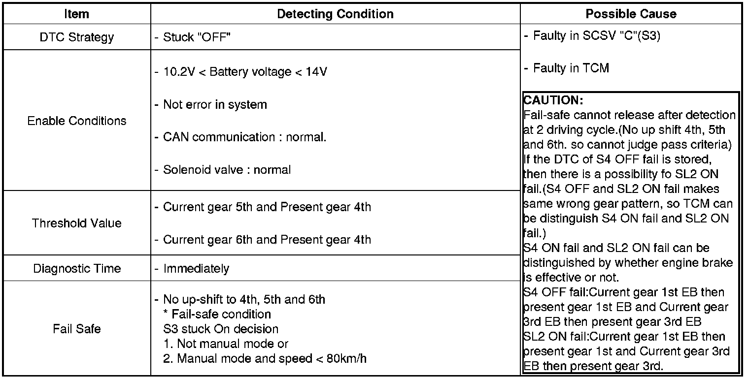 TCM set this code If the rear gear ratio that calculated by Engine speed/Output speed and the target gear ratio that calculated by compounding of solenoid valves are not match.