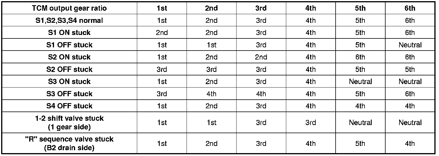 Solenoid Valve Operation Table