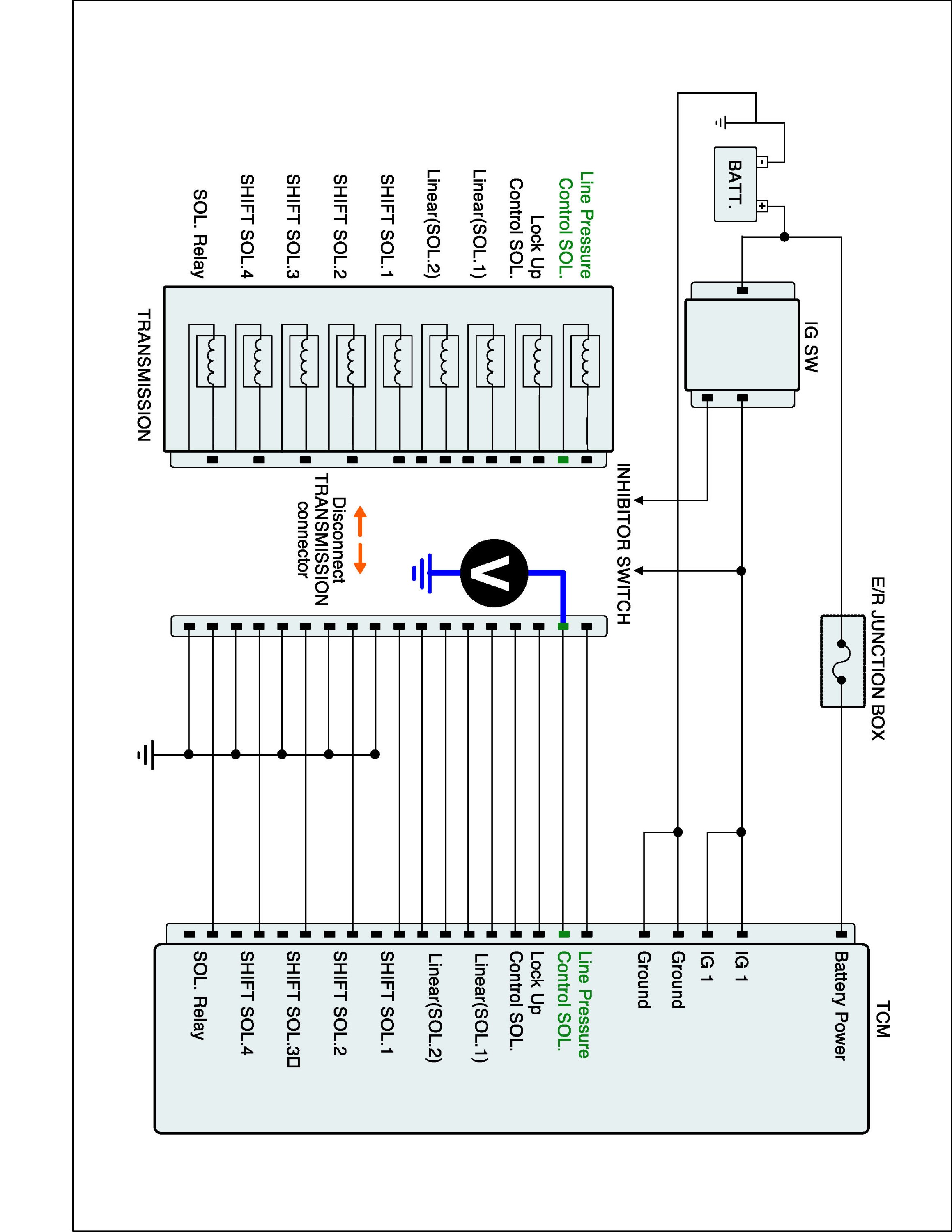 3. Measure voltage between Ground terminal of "Line pressure solenoid valve (SLT)" and chassis ground.