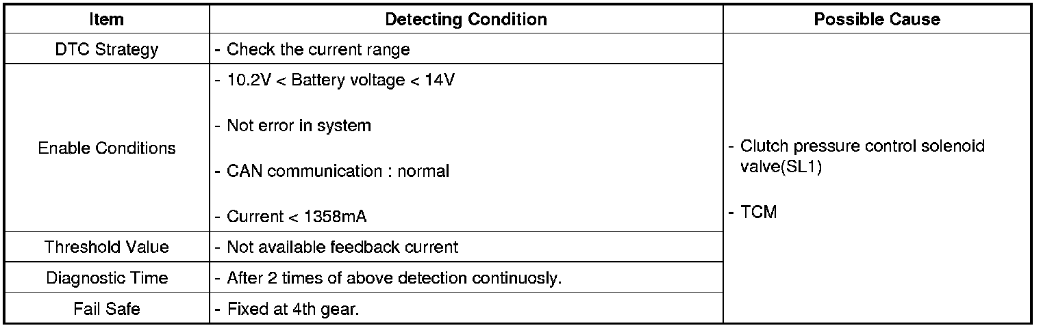 TCM controls clutch control solenoid valve at 5th and 6th gear. TCM set this code If target current and feedback current are not match.