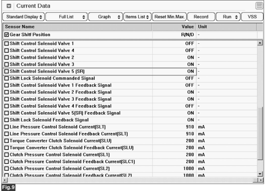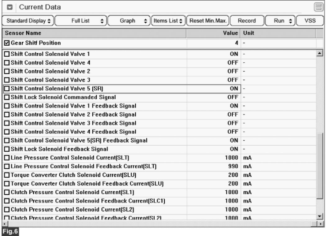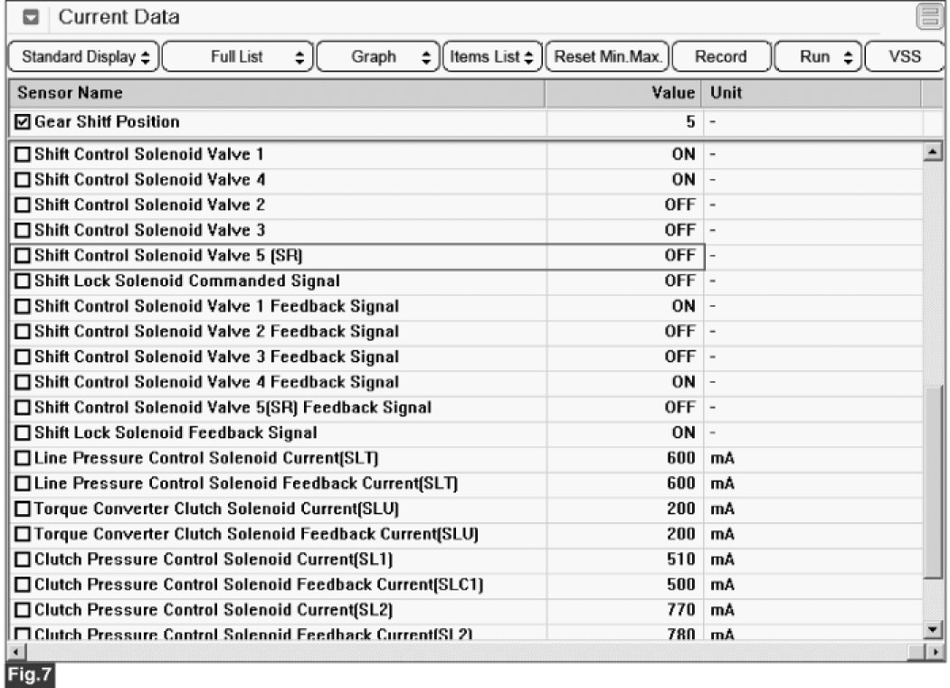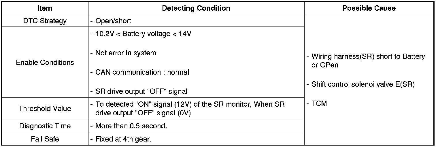 TCM set this code If detected "ON (12V)" signal When TCM output "OFF (0V)" signal to "Shift control Solenoid valve E (SR)"