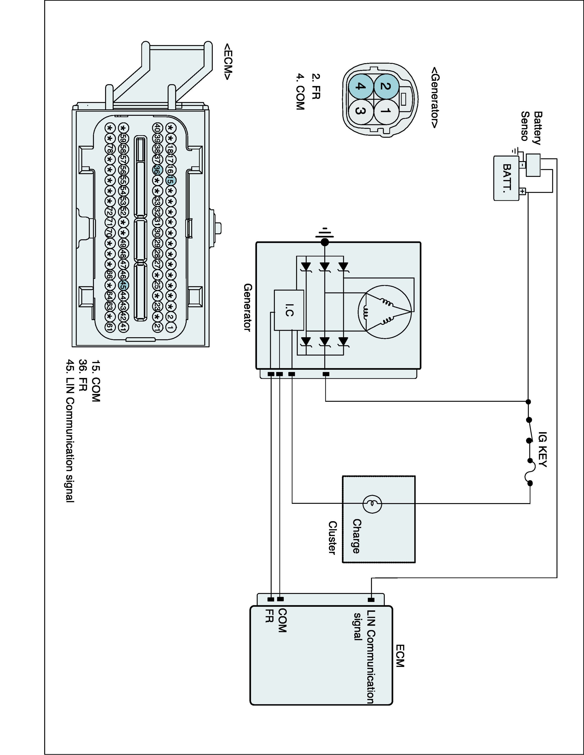 Many control units have applied to vehicle as it becomes more electronic. These units control their own system based on information from diverse sensors. Therefore necessity of common use of diverse sensor information and importance of stable power supply are gathering strength. Battery sensor is mounted on battery (-) terminal. It transmits battery voltage, current, temperature information to ECM. ECM controls generating voltage by duty cycle based on these signals.