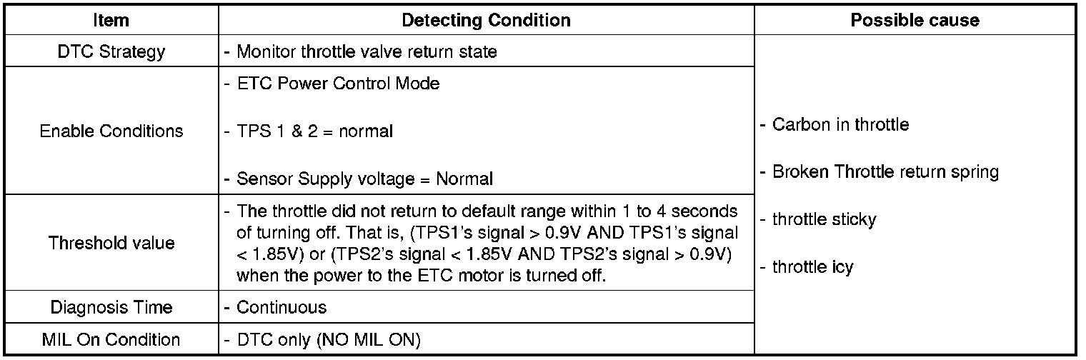 Checking throttle valve return state under detecting condition, if an output signal is within the threshold value for more than designated time, ECM sets P1523.