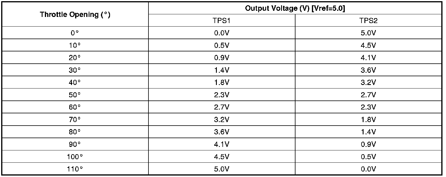 Fig 2) Normal waveform of TPS1 & TPS2 with accel pedal depressed under IG ON condition