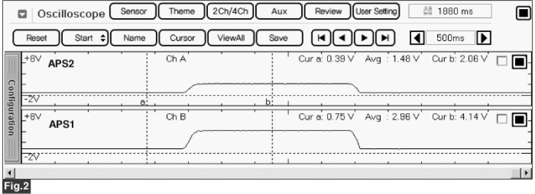 Signal waveform of APS 1 & 2 shows that APS 2 increases voltage just half of APS 1 voltage increase when accelerating.