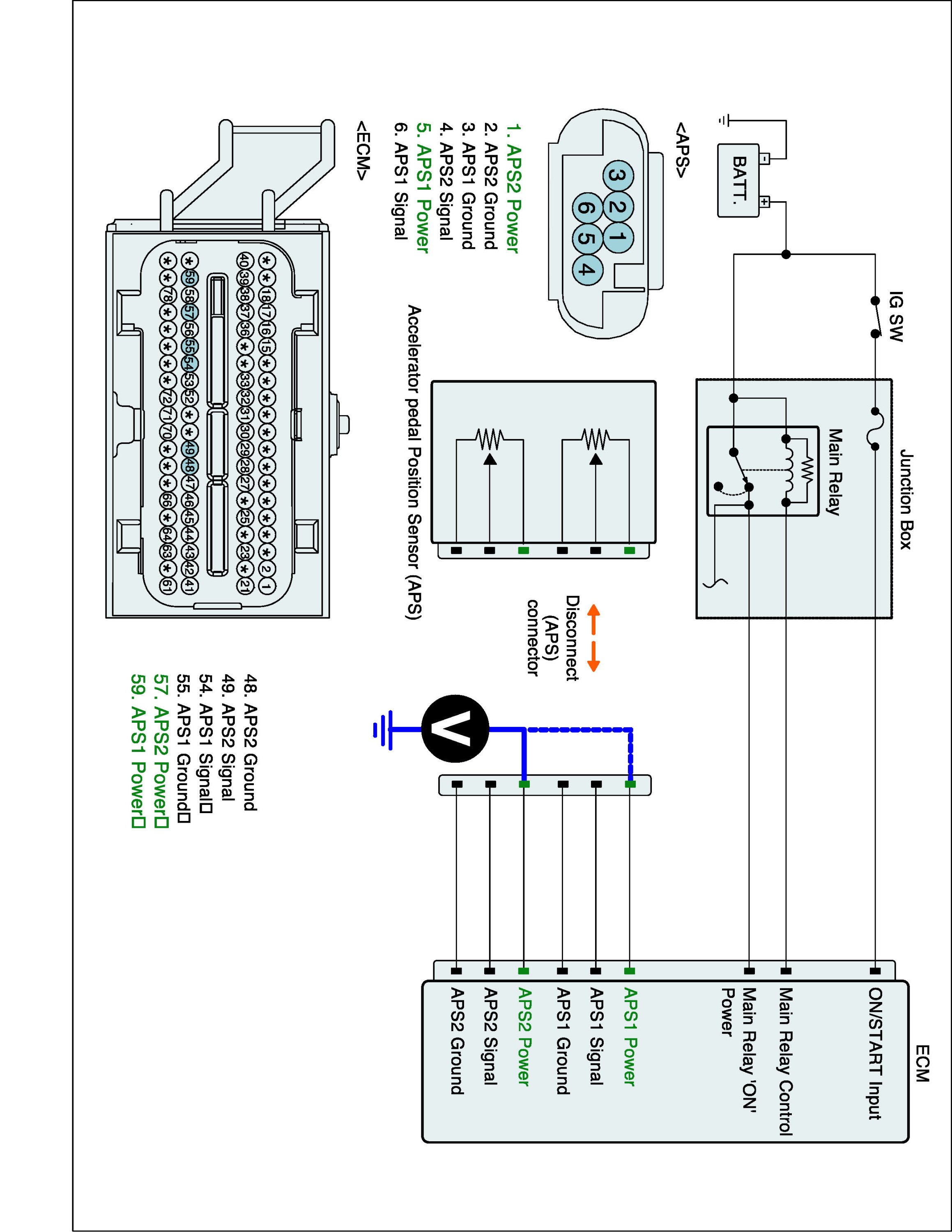 3. Measure voltage between APS1 (2) power terminal of APS harness connector and chassis ground.