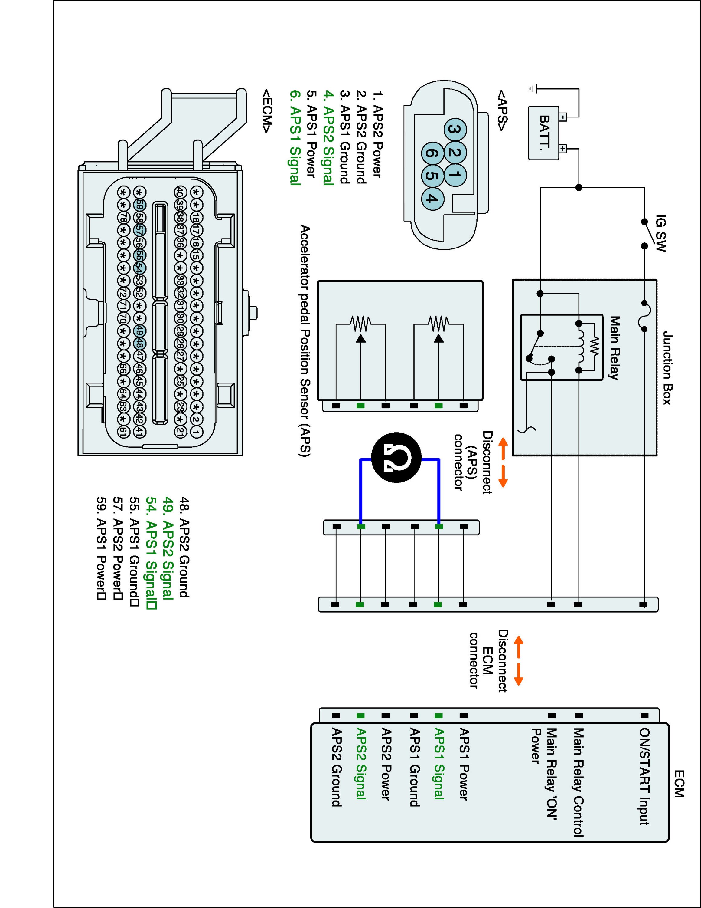 1. IG "OFF", disconnect APS connector and ECM connector.