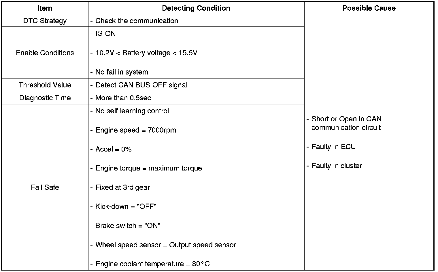 DTC Detecting Condition
