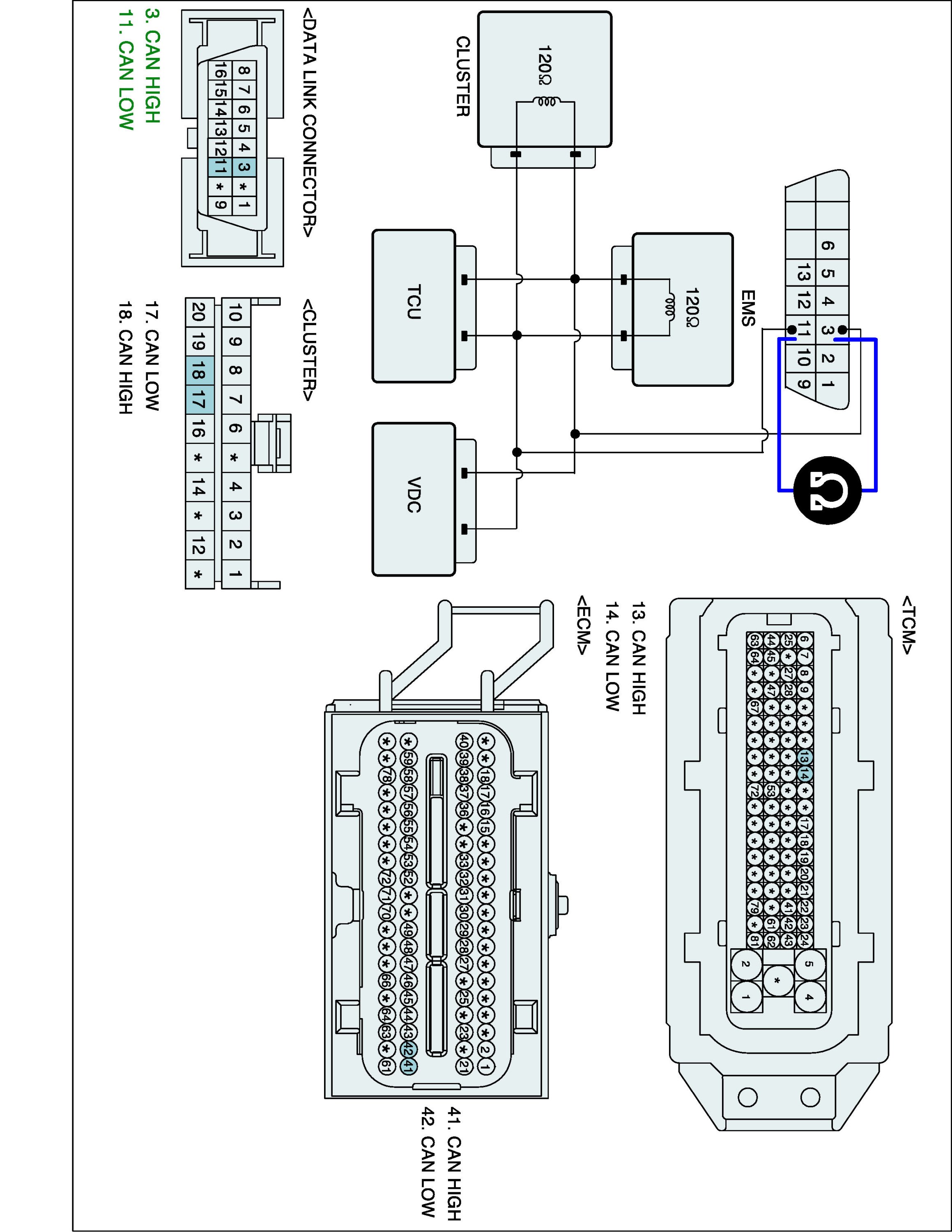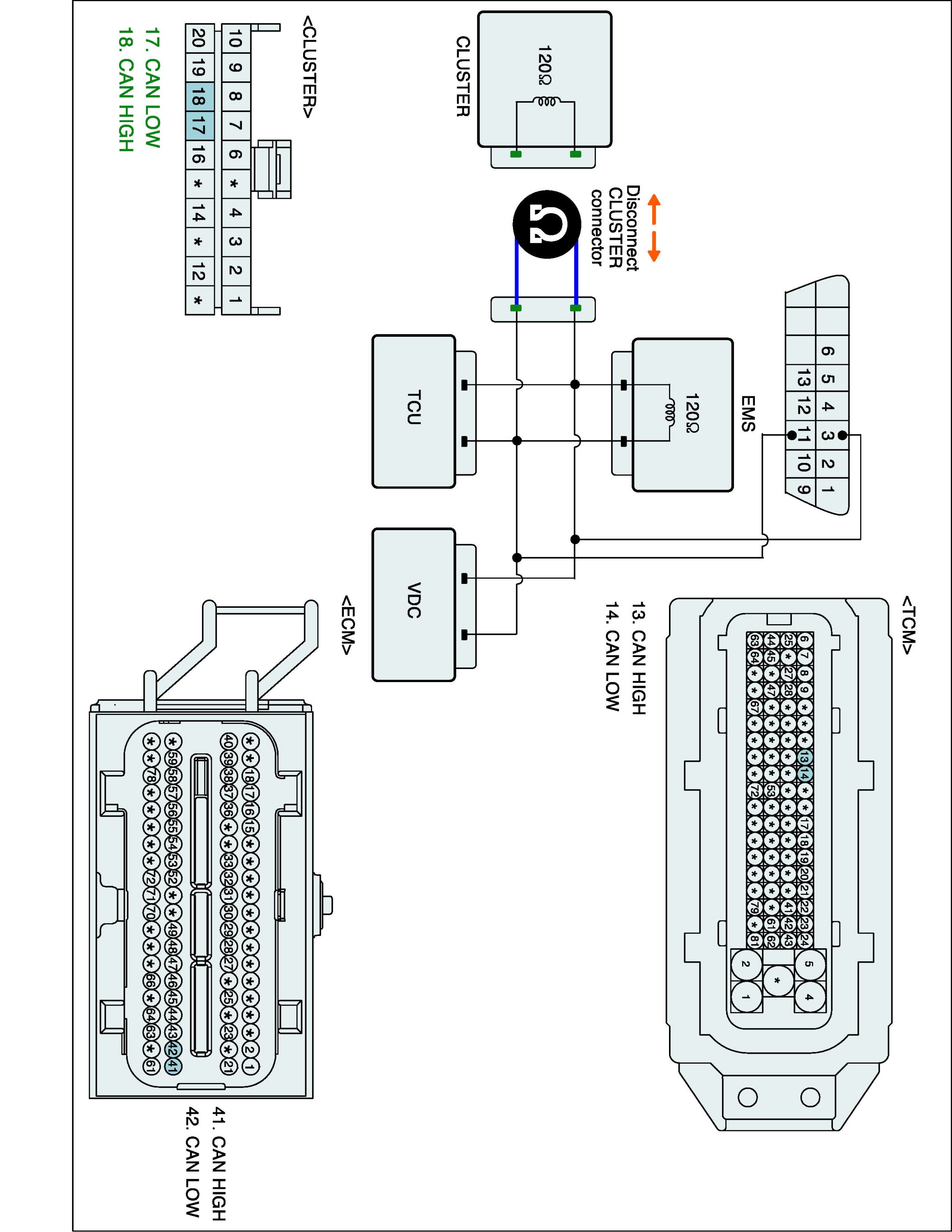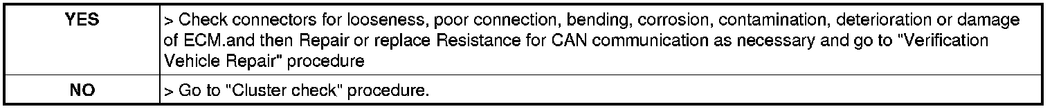 3. Measure Resistence between "CAN HIGH" terminal and "CAN LOW" terminal of Cluster wiring side.