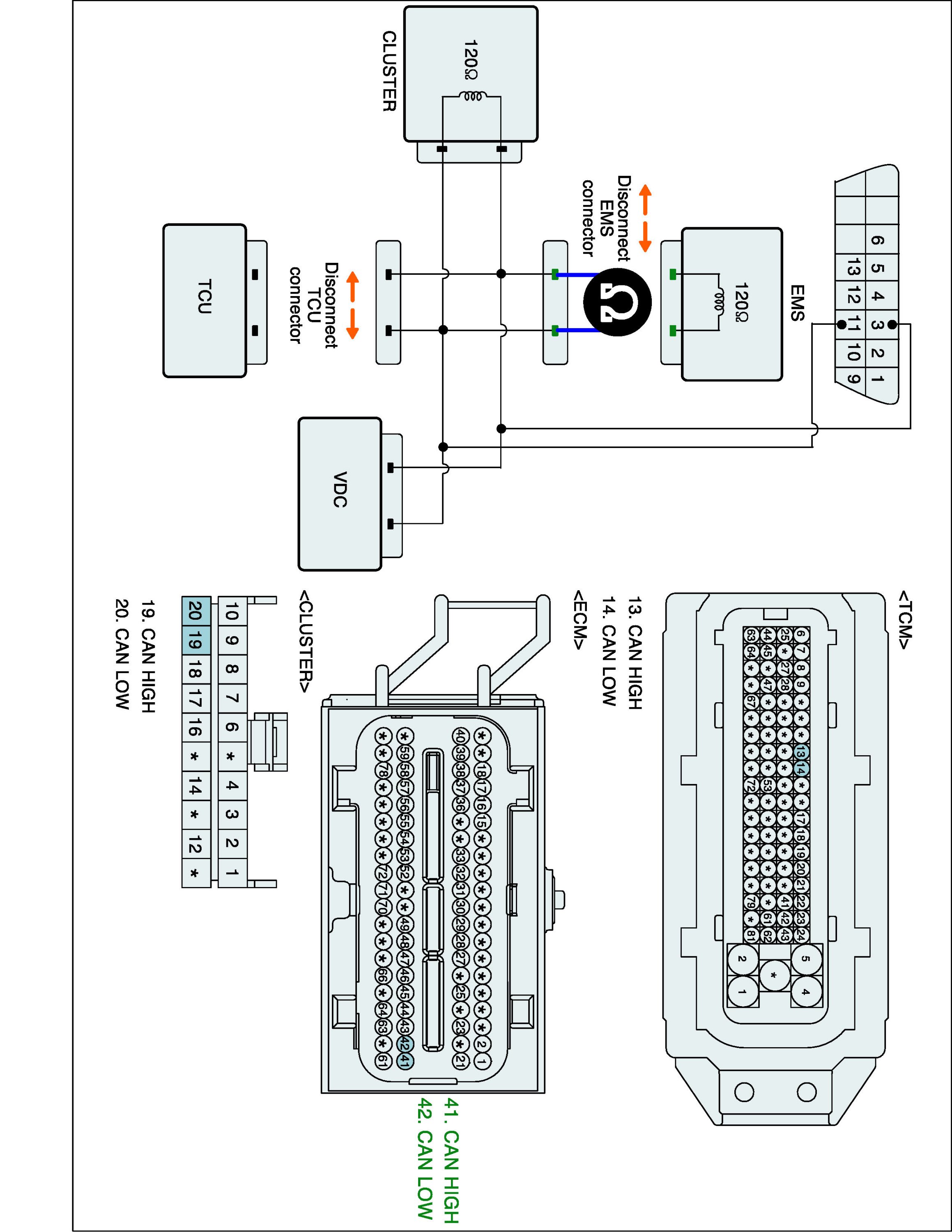 3. Measure Resistence between "CAN HIGH" terminal and "CAN LOW" terminal of ECM wiring side.