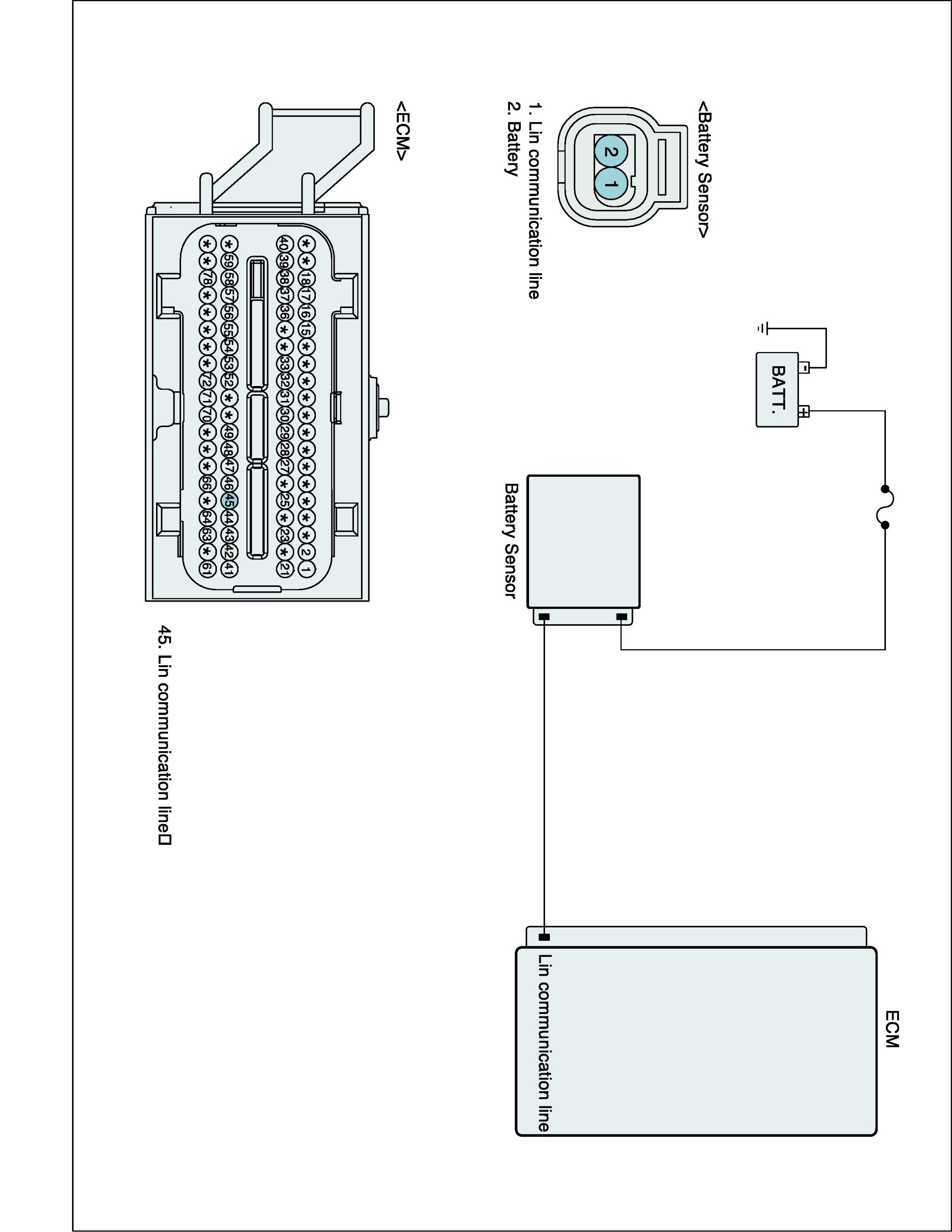 Many control units have applied to vehicle as it becomes more electronically. These units control their own system based on information from diverse sensors. Therefore necessity of common use of diverse sensor information and importance of stable power supply are gathering strength. Battery sensor is mounted on battery (-) terminal. It transmits battery voltage, current, temperature information to ECM. ECM controls generating voltage by duty cycle based on these signals.