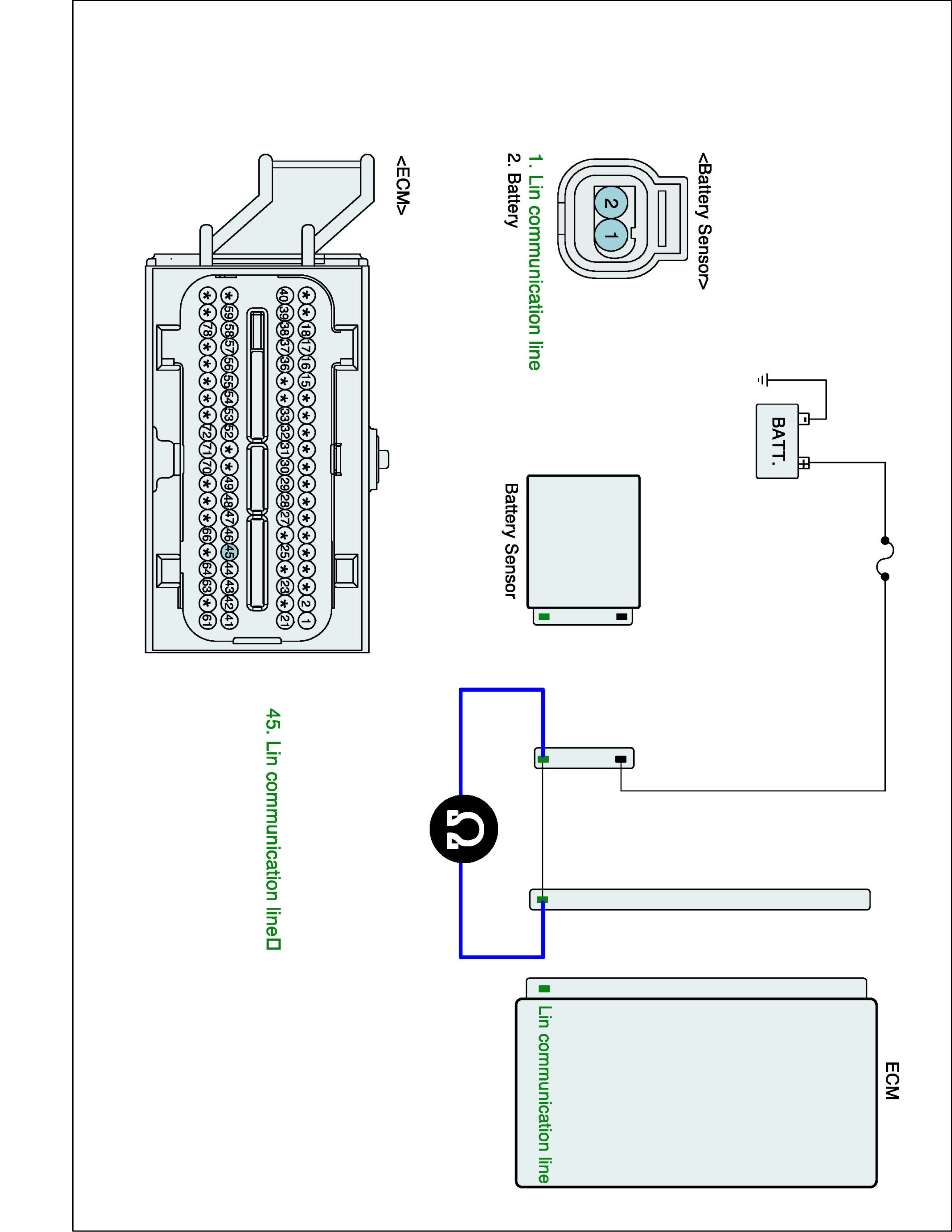 1. IG "OFF" and disconnect battery sensor and ECM connector.