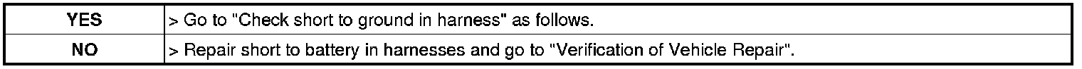 Check short to battery in harness