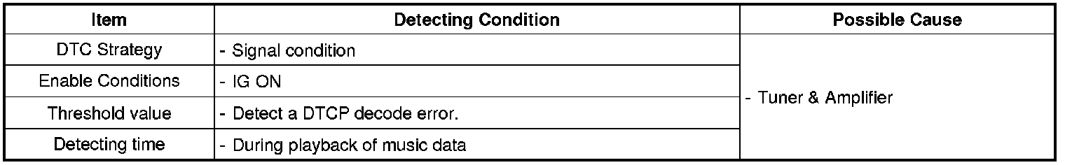 This code is set when the decode error is detected during DTCP is working in Tuner & Amplifier.
