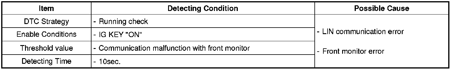 This code is set when Head unit detected communication error between Head unit and front monitor.