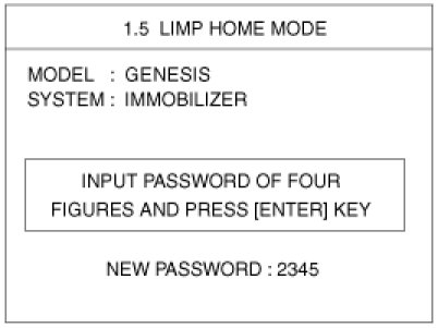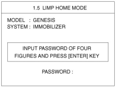 If the PCM(ECM) detects the fault of the SMARTRA or transponder, the PCM(ECM) will allow limp home function of the immobilizer. Limp home is only possible if the user password (4 digits) has been given to the PCM(ECM) before. This password can be selected by the vehicle owner and is programmed at the service station.