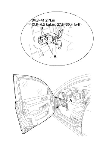 - After installing the door, check for a flush fit with the body, then check for equal gaps between the front, rear, and bottom, door edges and the body. Check that the door and body edges are parallel. Before adjusting, replace the mounting bolts.