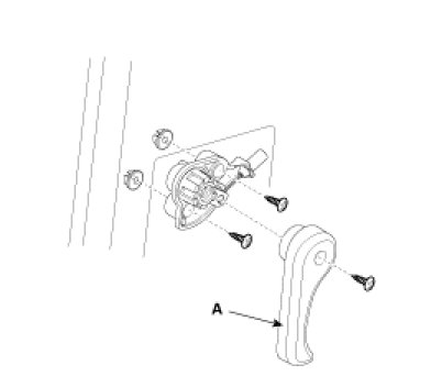 1. After loosening the mounting screw, remove the hood release handle (A).