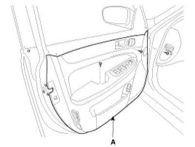 3. Remove the power door lock switch module (A) from the front door trim panel after disconnecting module connector.