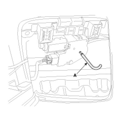 B. Push the emergency handle up into the hexagonal drive (A) of the sunroof motor. You must push hard enough to disengage the motor clutch; otherwise the emergency handle will slip due to incomplete fit in the motor.