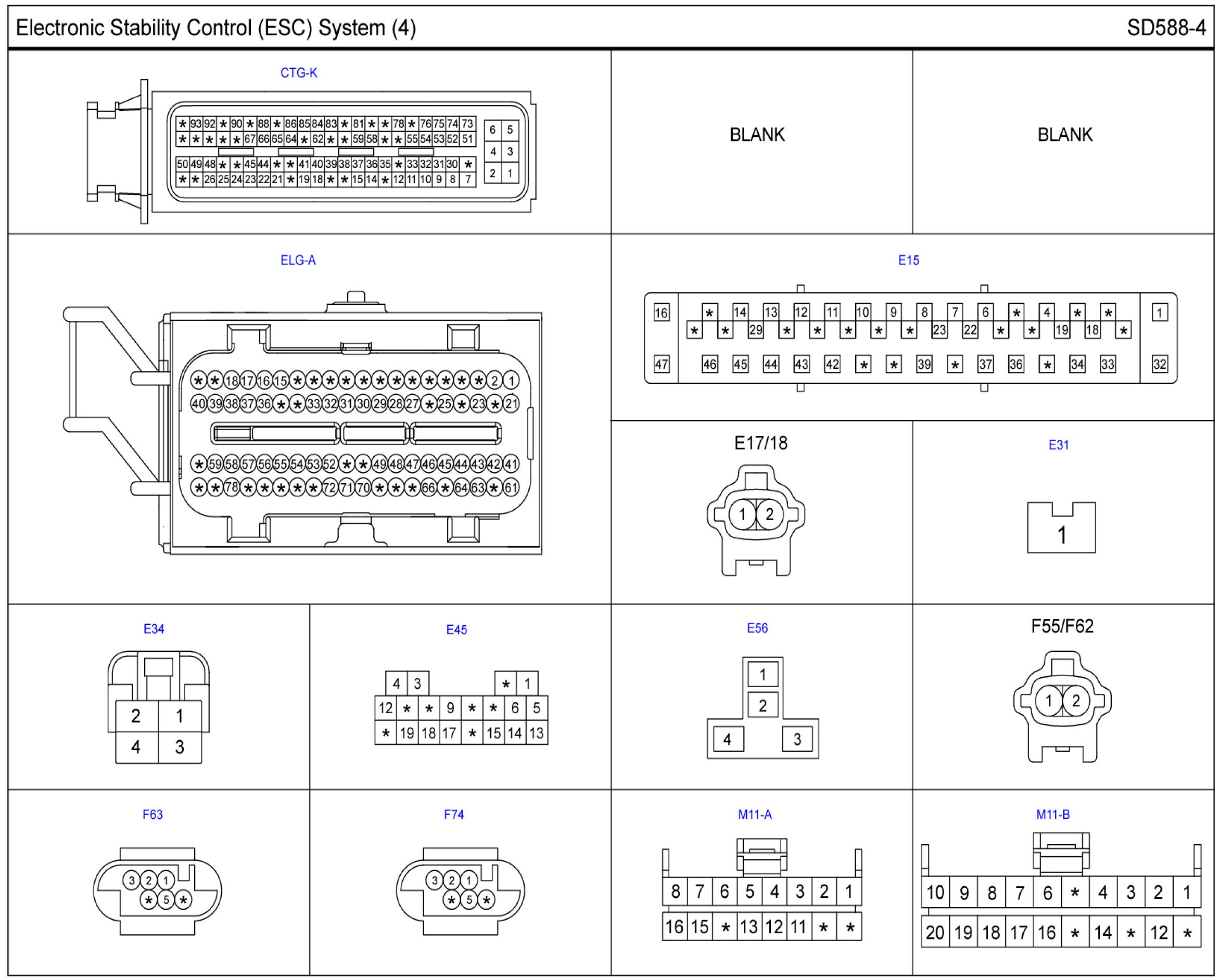Electronic Stability Control (ESC) System Connector Pin Outs: