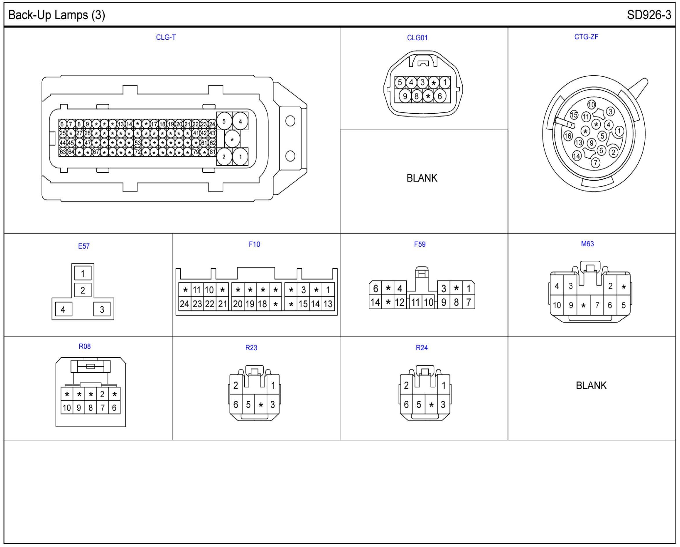 Back-Up Lamps Connector Pin Outs: