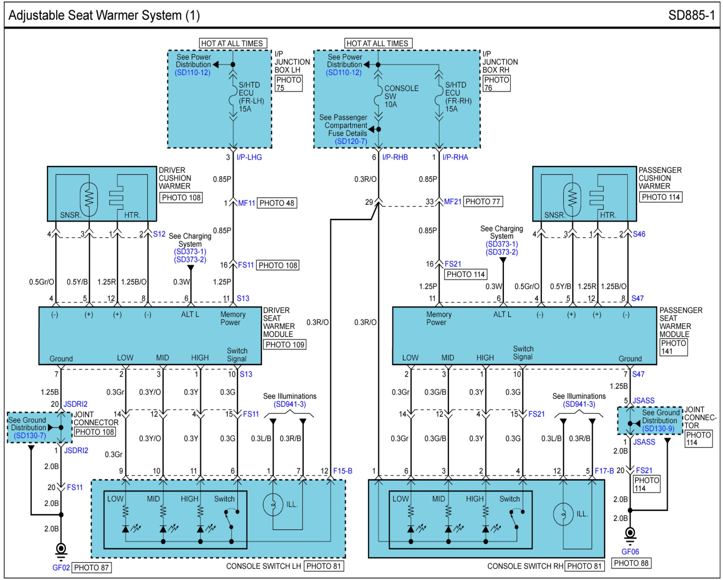 Locations: Location photographs (references to PHOTOS) referred to within these diagrams can be found via the photo number at the vehicle level under Locations by Photo Number. Component Locations