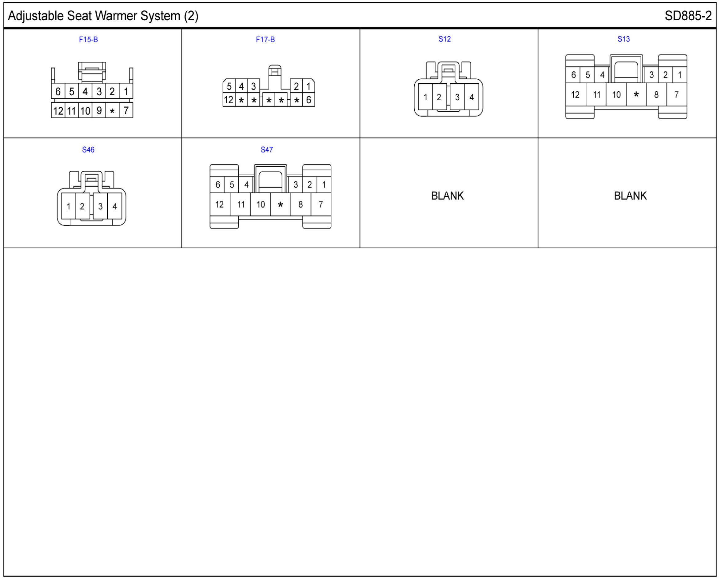 Adjustable Seat Warmer System Connector Pin Outs: